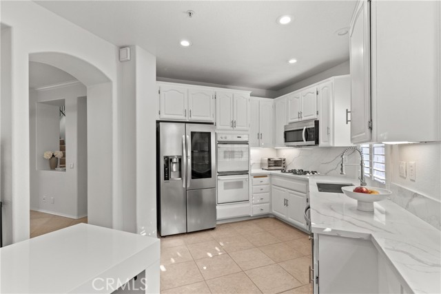 This modern and spacious floorplan comes with a large wrap around gated front patio and beautiful views of greenbelt. Located in the desired community of Tivoli. Large living room with Cathedral ceiling and 3 fireplaces for warmth and ambiance. Dining room with Restoration Hardware light fixture next to the remodeled kitchen and family room. Family room with fireplace and beautiful Sonneman light fixture. Master bedroom suite with fireplace, romantic balcony, walk-in closet and large remodeled bath with freestanding tub and shower enclosure. Secondary bedrooms with remodeled bathroom. Handsgrohe and Kohler bathroom fixtures. Inside laundry room, plantation shutters. Linen closets in the hallway. Attached 2 car garage with storage space. Located near pool and spa biking, walking and running trails, parks, SOKA University, shopping and restaurants. Short drive to the beach.