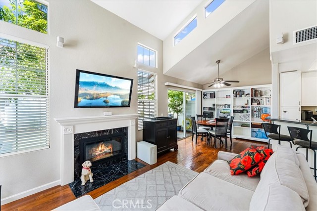 Welcome to this rare-to-market gem—a beautifully maintained 2-bedroom, 2.5-bathroom attached single-family home in a charming community of just 43 homes built by the renowned William Lyon Homes. This home impresses with soaring vaulted ceilings, stunning distressed chestnut wood floors, and fresh modern paint throughout, creating a warm yet contemporary ambiance. Both bedrooms feature en-suite bathrooms, offering privacy and comfort, while a convenient half bath is located downstairs, perfect for guests. The kitchen boasts sleek granite countertops and brand-new appliances, making it a culinary enthusiast’s dream. Plus, all appliances—including the LG washer and dryer—will convey with the home to the lucky new owners. Step outside to your expansive yard, a perfect retreat with lush green grass for relaxation or weekend gatherings. The home also features an attached 2-car garage with direct access for convenience. The garage is equipped with a rack system for additional storage and a Craftsman workbench, ideal for weekend projects and hobbyists. Located just minutes from the world-class beaches of Laguna Beach, this home is perfectly positioned near the famous Pageant of the Masters and the Festival of the Arts, offering year-round cultural events and entertainment. Thriving business hubs in Irvine and Aliso Viejo are also nearby. With easy access to the 73 Toll Road and the 133 Canyon Road, you’re just a short drive from Newport Beach, Costa Mesa, and Irvine. The 133 also conveniently connects to both the north and south entrances of the 5 and 405 freeways, making your commute a breeze. Don’t miss this rare opportunity to enjoy a tranquil, low-maintenance lifestyle in one of the area's most desirable communities!
