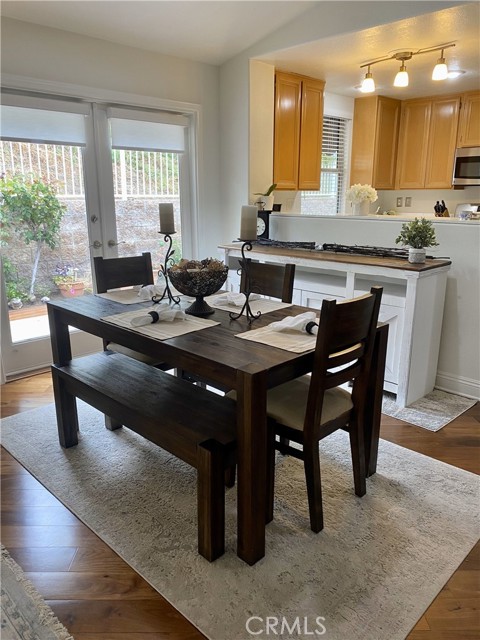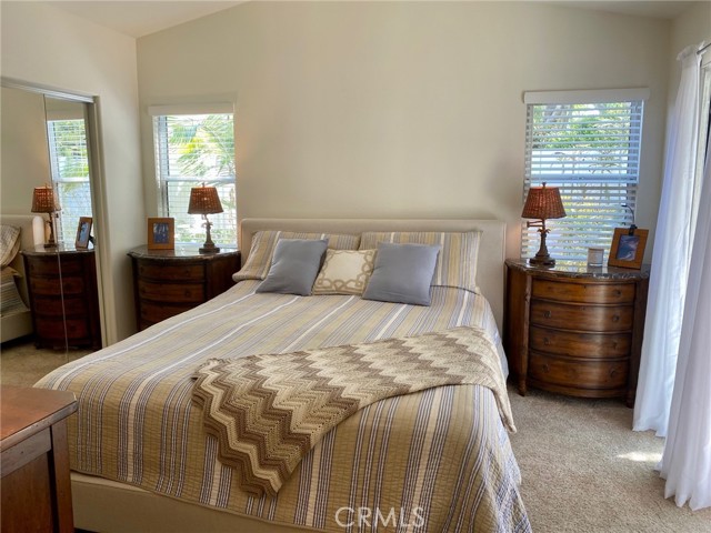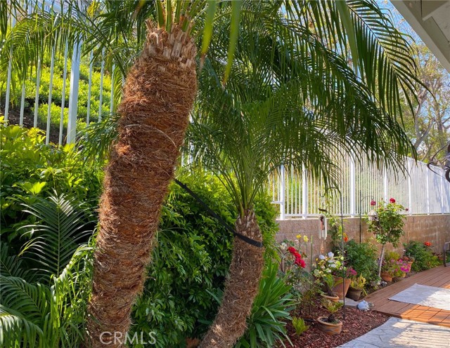 Hurry, this is what you have been searching for. Charming DETACHED home, on a quiet cul-de-sac! Tropical wrap around yard, Robelini Palms, Evergreens, Flowers, Lawn , deck and 3 relaxing sitting areas. The home is immaculate and opens to peaceful, private yard. The home Boasts of Gorgeous Hard Wood Floors! Great Room Style Living with open Kitchen to Dining and Living Room with Vaulted Ceilings offering Maximum Natural Light! Two Private Bedrooms and two full bathrooms! Primary Bedroom fits Cal King, Nightstands, Over Sized Dresser with oversized closet with Mirrored Closet doors, Open the slider in the morning to the sounds of birds singing! Dining Opens Through French Doors to Deck and sitting area perfect for Entertaining and BBQ! Kitchen offers Stainless Gourmet Gas Stove/Oven and New Refrigerator! Recessed Lighting Thru out! New Shutters, 2-inch Blinds, Paint, Carpet in bedrooms, new screen doors throughout. New Exterior Solar Light! Large 2 car garage and full driveway! The location is superb, gated community, minutes from the Aliso Viejo Town Center! Movies, Shopping and Dining. 5 Miles to World Renowned Beaches. A short Walk to Capo Unified Elementary and Middle Schools. LOW DUES! LOW TAXES! Perfect for first time buyers, young families, empty nesters.