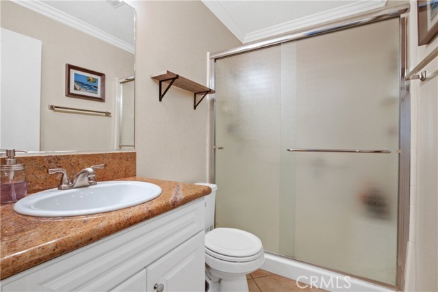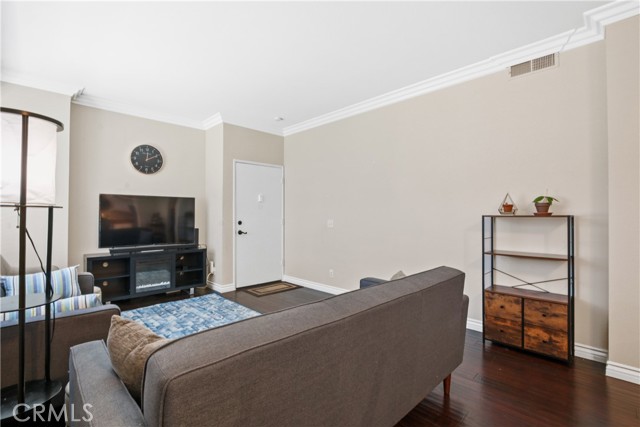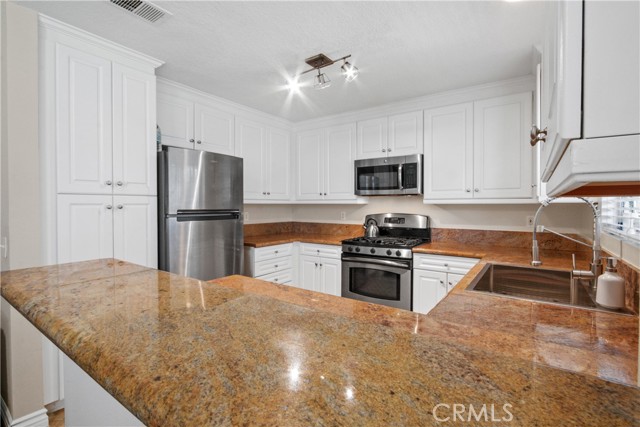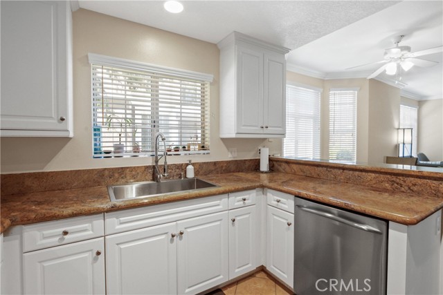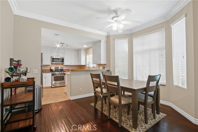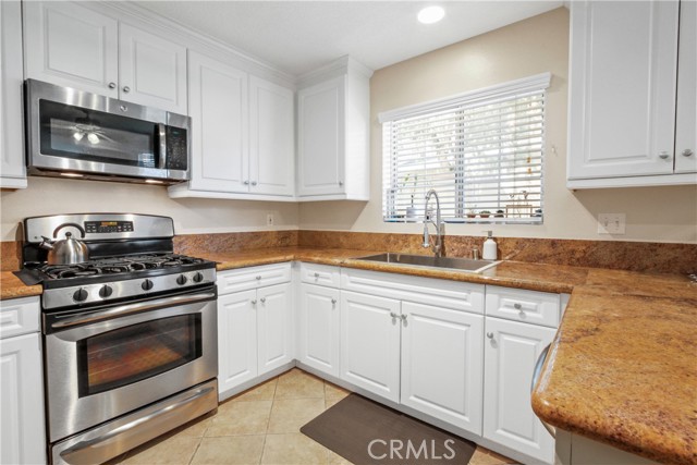 This immaculate, ground-level condo is a must-see! Situated in a secure, gated community that offers a wealth of amenities, it's the perfect place to call home. The open-concept design is ideal for hosting gatherings and keeping an eye on little ones. Natural light floods the space, highlighting the stunning wood floors and crown molding. The spacious kitchen features granite countertops and a breakfast bar, which seamlessly flows into the dining and living areas. Step outside to the charming patio, an ideal spot for BBQs and socializing with loved ones. The garage boasts direct access to the unit and houses the laundry facilities. In addition to the dedicated parking space, ample guest parking is available. The community amenities include two sparkling pools and spas, a fitness center, a playground, and a clubhouse. Just minutes away from grocery stores, great dining options, and shopping centers. Enjoy outdoor recreation with access to nearby schools, parks, biking, hiking, running, and walking trails. Conveniently located close to popular attractions such as Irvine Spectrum, Mission Viejo, Disneyland, Knotts Berry Farm, Lego Land, Angel Stadium, and Honda Center/Anaheim Ducks. This condo won't last long!