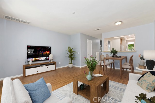New opportunity in the Morningside community. Light & bright Aliso Viejo unique townhome/condo style property, classified as an attached single-family residence which is also FHA/VA Approved!!!! This home sits in the Interior and Quiet location. The property has fully fenced-in front and back yard patios. Laminate Flooring runs through the Family Room open to the Dining Room. White-tiled kitchen with white appliances makes a nice clean fresh look. A large primary bedroom complete with a sizeable balcony and vaulted ceilings offers great space and natural lighting. The bathroom ensuite has an upgraded expanded tub with tiled walls. Major appliances such as the Water Heater, and AC units have been replaced two years ago. Parking consists of one assigned covered space with storage and one assigned uncovered space. There is also marked visitor parking throughout the community and street parking, as well. Morningside amenities include a pool, spa, BBQ, picnic areas, and sidewalks. Close to many shopping and dining options, toll road access, and award-winning Capistrano Unified School District; a short drive to Laguna Beach, Dana Point Harbor, and some of Southern California’s finest beaches. Come and Enjoy the Aliso Viejo lifestyle!