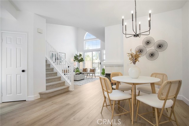 Welcome to your dream home in a prime location with easy access to the stunning shores of Laguna Beach. This beautifully updated 3-bedroom, 3-bathroom residence offers a perfect blend of convenience and coastal charm. Step inside to discover the seamless flow of an open floorplan, highlighted by new vinyl plank flooring and carpeting that exudes comfort and style. Freshly painted walls create a canvas of elegance, complemented by abundant natural light throughout the space from the double height ceiling above the living room. The heart of the home is the inviting living room, where a cozy fireplace invites you to unwind after a day of adventures. Adjacent is the newly refreshed kitchen, featuring sleek quartz countertops. Convenience meets comfort with one bedroom and a full bath located downstairs, offering versatility for guests or a home office. Upstairs, the spacious primary suite awaits, boasting a serene sanctuary complete with high ceilings, an en-suite bathroom featuring dual sinks, two closets and separate w/c. An additional bedroom upstairs provides plenty of space for family or guests, along with another full bath. A one-car attached garage (and additional reserved space) and separate laundry room make for easy living. Outside, a patio awaits, offering a retreat for al fresco dining. The home is located in a highly desirable neighborhood with easy access to Laguna Beach and the Irvine Spectrum (each 15 minutes away). This home offers the quintessential Southern California lifestyle. Enjoy proximity to world-class beaches, renowned dining, shopping, and entertainment options. No mello roos taxes.
