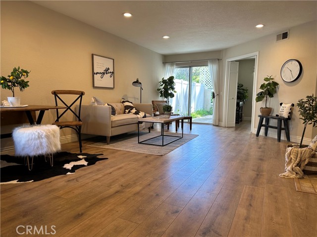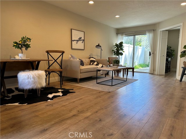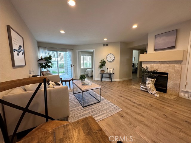 Stop searching!! This is the one you have been looking for! This beautiful Totally renovated bottom floor next to end unit in the Glenwood community of Aliso Viejo offers a quaint and cozy feeling of home !! It offers two bedrooms and 1.25 baths with a walking closet in master bedroom. Spacious, open, and airy floor plan with a large living and dining room area, with all Dimmable LED lighting throughout, Laminate flooring, Granite Counter tops and Porcelain floors and tile shower, with stainless steel sliding glass door, Newer refaced Cabinets throughout. Dual sink in Master bedroom, Slate style fireplace, Porcelain tile flooring in the kitchen area, Newer Baseboard and faucets, plenty of cabinetry and many more upgrades... This Unit overlooks the lush greenbelts. Nice size backyard with One-car spacious attached garage with shelving for storage, plenty of guest parking, washer/dryer hookup, Central A/C. Community amenities include recreational facility, club house, gym, tennis courts, lap pool, Jacuzzi, kids pool, kids play ground, BBQ facilities and gazebos. Located close to 73 toll roads, nearby parks, shopping restaurants, hikes, and just a few miles from the beach. Plenty of guest parking. Must see to appreciate!