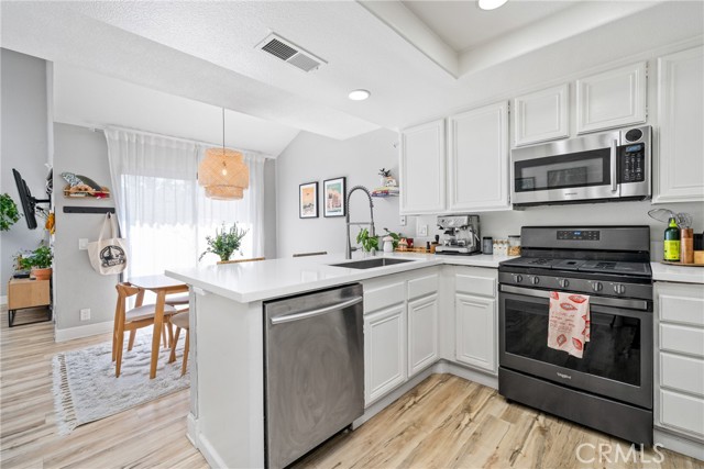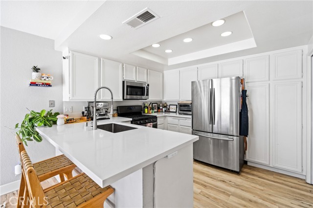 Perhaps the finest opportunity available in Aliso Viejo’s coveted enclave of Heather Ridge, this well-appointed home is sure to impress. Enjoy the premier location within the community as it is a corner unit and is just a short walk to the incredible HOA amenities. . Inside you'll find two generously sized bedrooms, two bathrooms, and sprawling living spaces bedecked with tasteful finishes. Soaring vaulted ceilings lend a sense of volume and grandeur that is truly unmatched at this price point. Dual primary suites are sure to impress and open up endless possibilities whether it be work at home or a generous guest quarters. The floor plan is highly efficient with a stylish spiral staircase ascending to the upstairs suite and the open concept living area makes entertaining a true joy. The beautifully appointed kitchen features all stainless steel appliances and recently updated quartz countertops as well as a large dining area. You will love the spacious deck which brings the best of California living and the ability to host while dining al fresco. A major value is the extended depth garage making it easy to accommodate a car as well as storage space. Numerous smart features make this home truly turnkey including: electronic blinds, lights, fan, AC, and garage door opener all accessible from the palm of your hand. Enjoy a resort lifestyle with the nearby community pool and spa, tennis courts, and outdoor cooking area. With close proximity to world-class shopping and dining throughout South Orange County, this home leaves nothing to be desired.