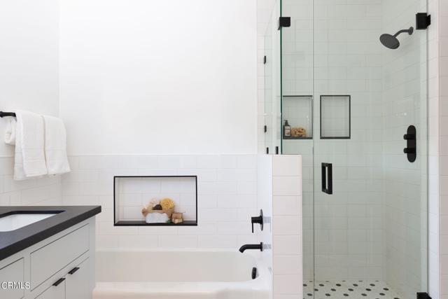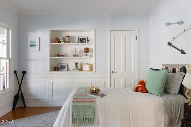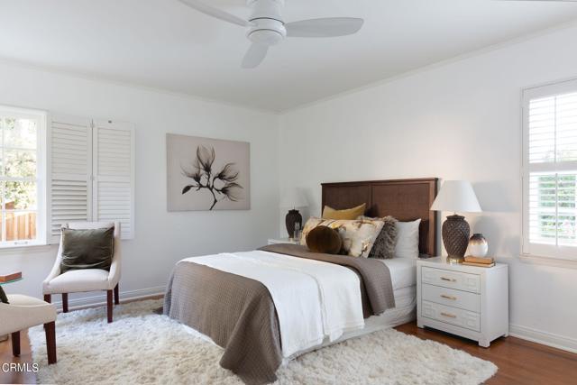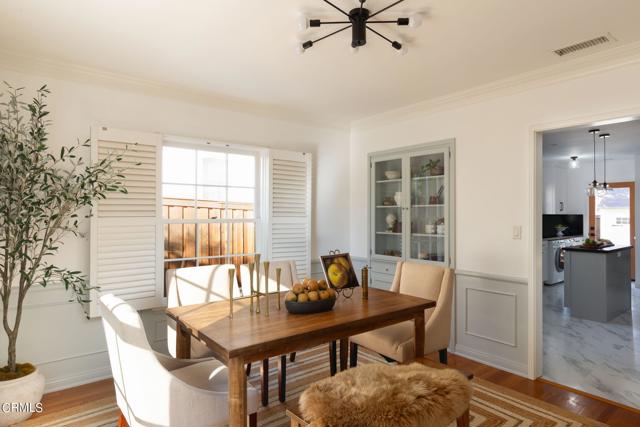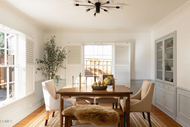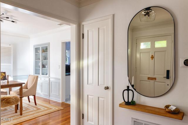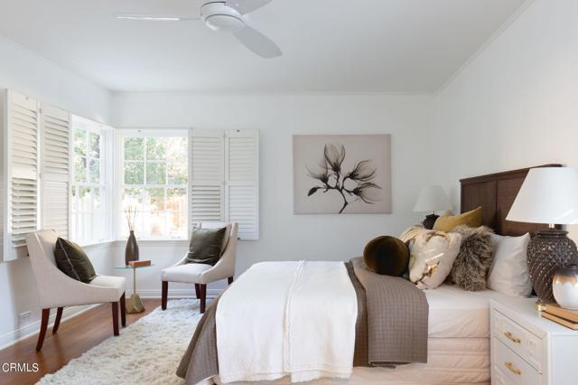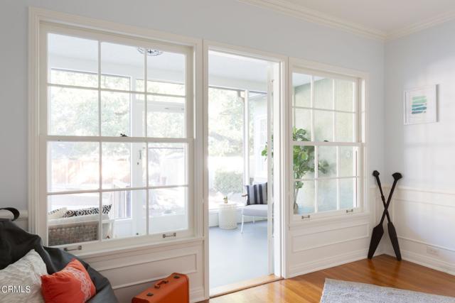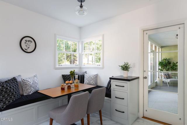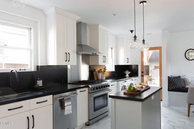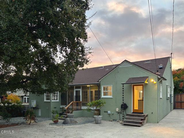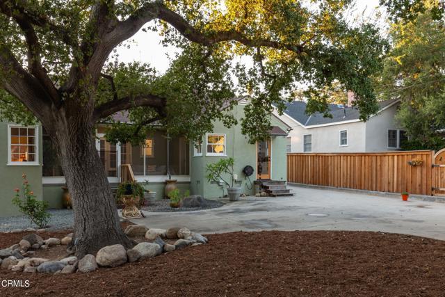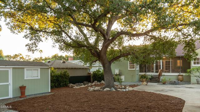 Welcome home to 2182 Grand Oaks Avenue! On the rim of Eaton Canyon, anchored by river rocks and two valley oak trees with views of the gorgeous San Gabriel Mountains, this meticulously renovated home with no detail spared, is a rare Altadena offering. A special home like this located in such a desirable neighborhood comes on the market just once in a blue moon. This 1941 single story three bedroom home has retained many of its beloved original details, including the freshly refinished original oak floors, wainscoting, crown molding and original doors. This is a pride of ownership home that has a fully renovated eat-in chef's kitchen just off the formal dining room, with high-end stainless steel appliances, thoughtful built-ins and storage options and a beautiful corner banquette and table, equally perfect for enjoying meals and as a homework station. The spacious primary bedroom boasts a walk-in closet, French door, charming wood shutters and views out to the lovely backyard. Other clever updates include a full bath with dual vanity and separate shower, a renovated 3/4 bath, a newer HVAC system, whole house fan, new interior and exterior paint, galvanized gutters and downspouts and a driveway gate. The list of improvements continues as the owners spared no cost or consideration. Professionally designed and landscaped, the yard is brimming with life and whimsy, including a picket fence, squirrel, critter and neighbor gate, all custom built. California native plants mixed with lime, tangelo, navel orange and fig trees abound. The screened porch, overlooking the backyard's live oak tree, provides a haven for daily relaxation and entertainment. To the rear of the yard is a 2 car detached garage and Tuff Shed that has been wired for electricity and could be used as a workshop, a yoga space or for more storage. Just a stone's throw from Eaton Canyon Nature Center, trailheads, lively watering holes like Prime Pizza and Millie's Cafe, the Pasadena Farmers' Market and public & private schools. Don't miss this opportunity to create a home 'Where Your Home Happens.'