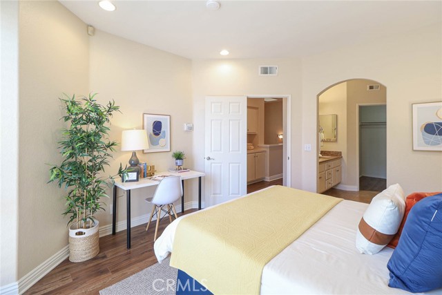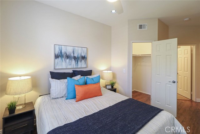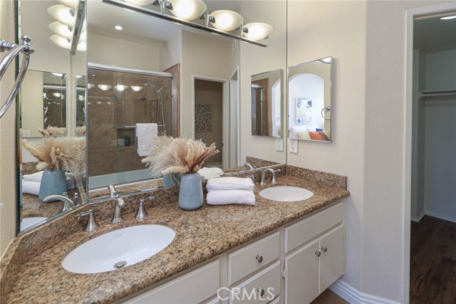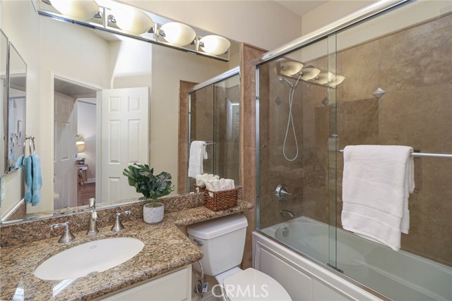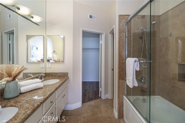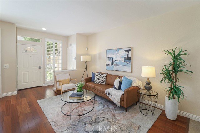 You are nestled atop Anaheim Hills in the resort-like Monaco community. It has a nice 2 good-sized bedrooms and 2.5 bathrooms. Walk in the front door and you will be immediately in awe – home, sweet home. Features include Brazilian Cherry Hardwood floors, a bright and airy living room with a fireplace, lots of natural sunlight throughout the house, recessed lighting, and ceiling fans; a kitchen with beautiful granite countertops and tile flooring, stainless steel appliances, a gas stove, a dishwasher, a refrigerator, energy-qualified door and windows with plantation shutters. The A/C unit is equipped with a smart home Nest thermostat device so you can control the A/C with your smartphone; a 2-car tandem attached garage with direct access. Upstairs features master bedrooms with dual vanities and large soaking tubs, large walk-in closets, and a private balcony perfect for drinks and relaxation after a hard-working day; a convenient laundry room with a washer & dryer in great condition will stay. This popular Monaco complex also features a large resort-style pool, a weight/workout room with newer equipment, 3 Spas throughout the Monaco complex, tennis courts, and BBQ areas. Canyon Rim Elementary School, Canyon Rim Park, and Walnut Canyon Reservoir are within walking distance and there's easy access to shops, libraries, restaurants, and Savi Ranch Shopping. Easy access to the 91, 55, 57 Freeways & 241 Toll Road. It is ready for you to move in and enjoy a resort-style complex. Don't miss the opportunity to own this beautiful home in this resort-like community. Stop Looking and Start Living. Call to schedule a private tour of this beautiful home today.