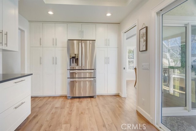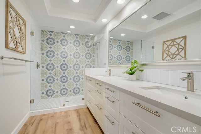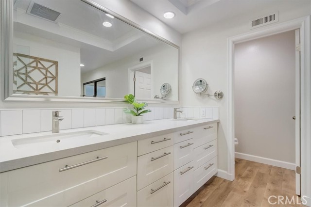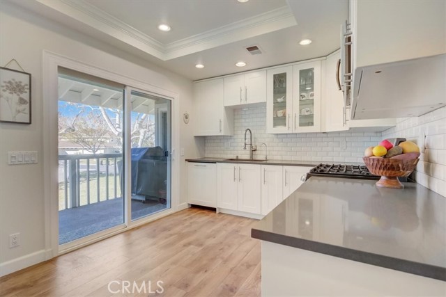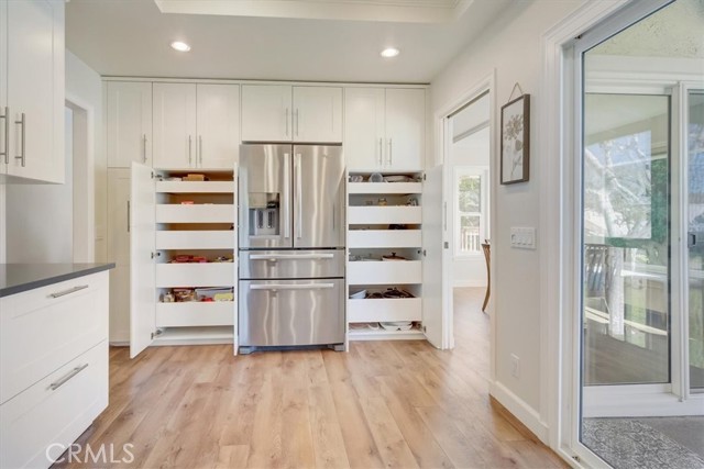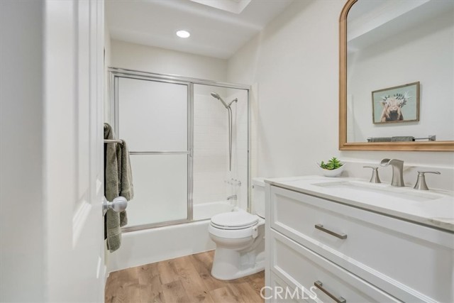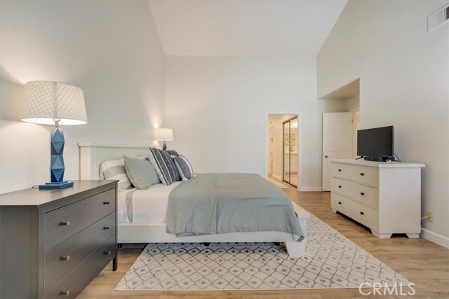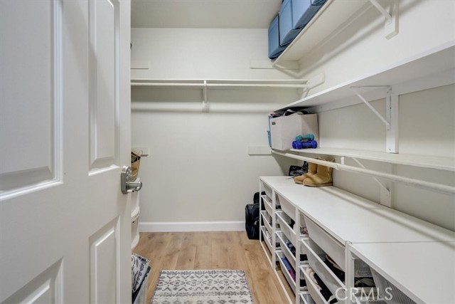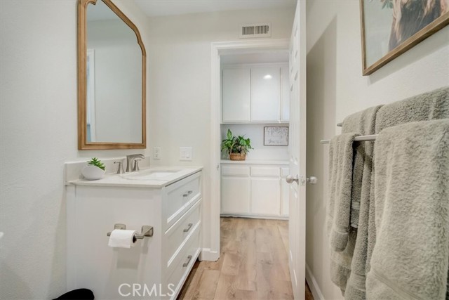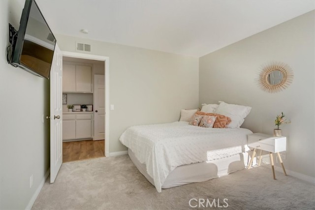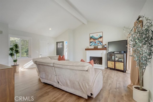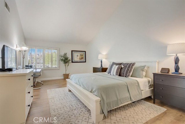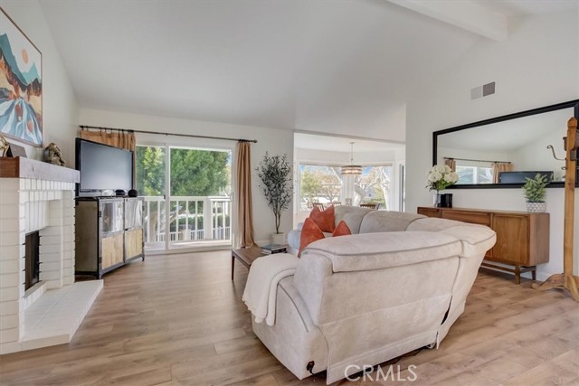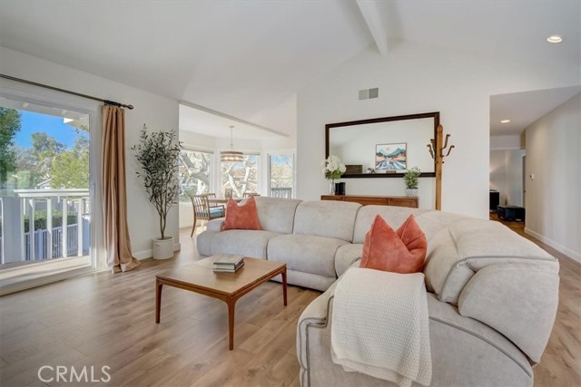 Beautiful 2 bed/2 bath home in highly desirable Canyon Pointe in Anaheim Hills. One look and you'll see this is not your typical condo complex. Peaceful, gated community offers wide-open spaces with greenbelts and mature trees everywhere and plenty of guest parking. 2-car garage. A private courtyard entry will lead you to your property and just a short walk away is a relaxing pool and jacuzzi. Once inside this upper unit home, you will notice soaring vaulted ceilings and an open, spacious floor plan with brand-new laminate wood floors, baseboards and trim. This home was recently painted a beautiful neutral color. The living room, dining room, and kitchen have big bay-style windows and three sliders with relaxing views and will lead you to two private balconies. Inside laundry room is down the hall away from master bedroom and main living area. Huge master bedroom with hallway leading to walk-in closet and large en suite bathroom. Master bath was completely remodeled. Large shower with beautiful tile. Double vanity with large drawers underneath the sinks that will let you easily organize your toiletries. Also has a unique pull-out laundry hamper. Kitchen was completely gutted and much thought was put into the amenities. Soft-close cabinets galore. Two large pantries with pull-outs. And no more reaching for pots and pans way in the back with the extra large cabinet drawers. Dishwasher blends right in to the cabinetry, and there is a trash/recycle bin that pulls out next to the stove. This home has a recently replaced AC/heating unit and water heater. Brand-new double-paned windows. Has a reverse osmosis water system under the kitchen sink that is connected to the refrigerator's water and ice. Two quiet whole-house fans keep the AC costs down. And the entire community was re-piped in approx 2018. Short distance to the 91 frwy, 55 frwy and 241/261 Toll Roads. Minutes to shopping and entertainment. And if you like the outdoors, you are minutes away there is Yorba Regional Park, Santiago Oaks, Irvine Regional, Yorba Linda/Chino Hills trails, Oak Canyon Nature Center, and the Walnut Canyon Reservoir. Easy to get your steps in around here!