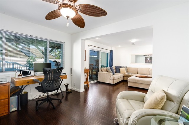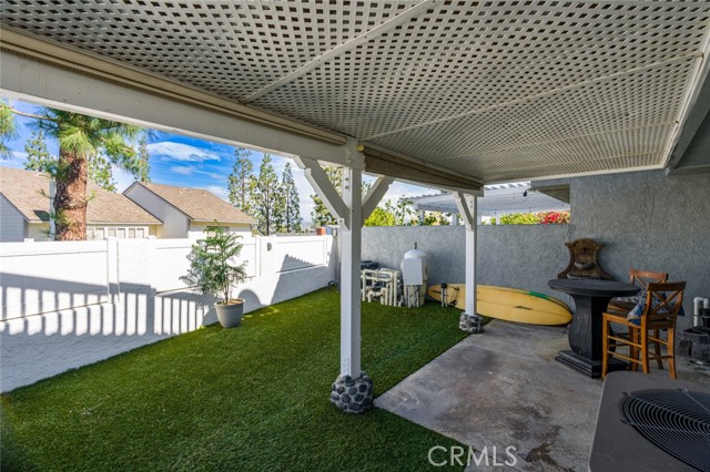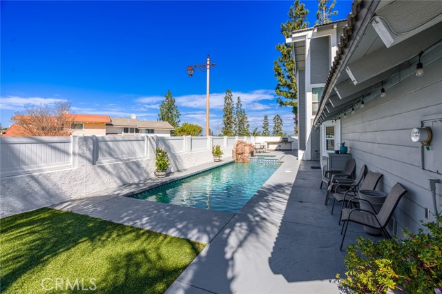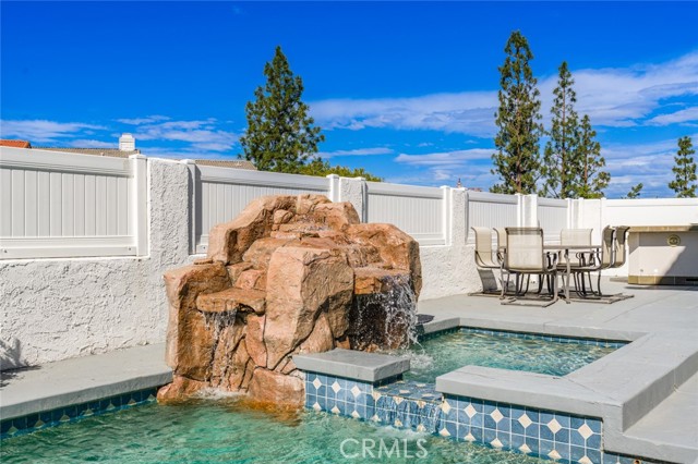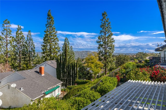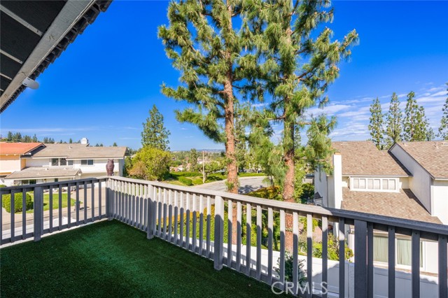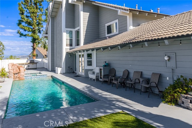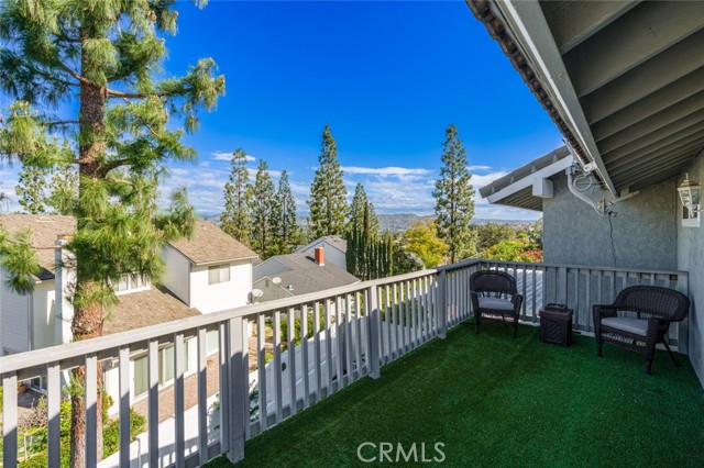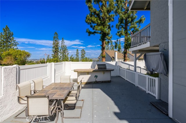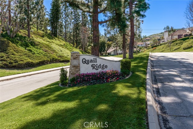 Welcome to this stunning two-bedroom, three-bathroom, single-family attached home located in the coveted Quail Ridge community of Anaheim Hills. The property boasts a desirable corner lot location with gorgeous views. The gated entry leads to an inviting yard adorned with a Pebble Tec saltwater pool and spa, accompanied by a delightful rock fountain. The built-in barbeque island and covered patio area facilitate seamless al fresco dining in this serene outdoor oasis. The main level offers a grand kitchen equipped with ample custom cabinetry, granite countertops, a double oven, and a breakfast nook. French doors offer a beautiful view of the sparkling pool, infusing the space with natural light and an air of tranquility. Adjacent to the kitchen and living room, the dining room sets the stage for cherished moments shared with loved ones. A separate den off the living room presents the opportunity for a cozy home office or inviting guest room complete with a welcoming fireplace. Upstairs, retreat to the expansive primary bedroom, where vaulted ceilings and wide-ranging hill views await. Enjoy the picturesque scenery from the oversized balcony. The primary bath offers a luxurious escape, boasting an updated spacious shower, frameless shower door, double vanity, and a generously sized walk-in closet with mirrored doors. The second bedroom enjoys its own full bathroom, providing added comfort and privacy for guests or family members. Conveniently located on the first floor, a guest bathroom and individual laundry room simplify your daily routines. Adding to the ease of living is a two-car attached garage with additional storage space. Quail Ridge provides access to top-rated schools, a nearby library, a golf course, parks, and a nature center. Lovely views, modern amenities, and a prime location. Low HOA and No Mello Roos. Welcome home!