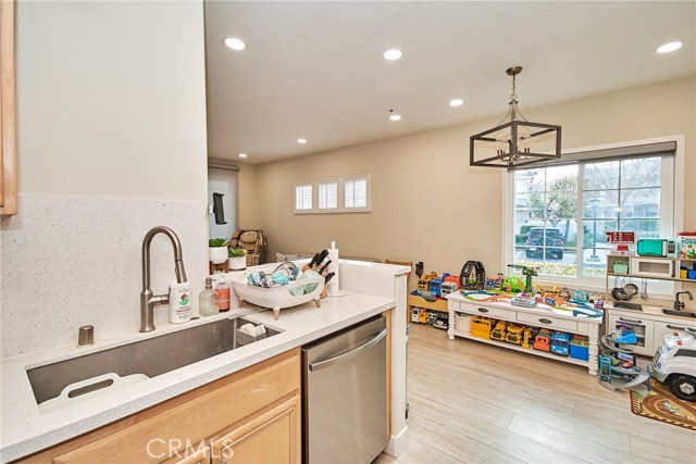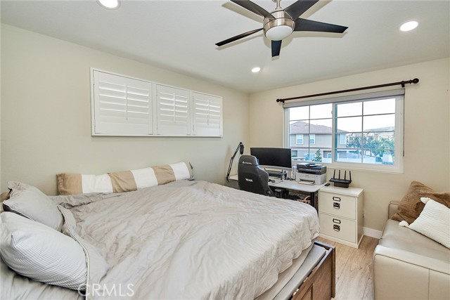 Welcome to your home in the Summit Park community. This property is a sought-after end unit that offers additional windows and privacy. Ideal location next to a park-like setting, guest parking, and a quick walk to the community pool and spa. The unit offers 2 bedrooms and 2 and 1/2 bathrooms. Kitchen has new stainless steel dishwasher, granite countertop, deep well sink and is open to the living room and dining room with modern recessed lights. Included in the sale are the new washer, dryer and new refrigerater! Dual master bedrooms are located upstairs along with a laundry closet with a stackable washer and dryer. The first master bedroom has a new ceiling fan, walk-in closet, and separate vanity/shower-bathtub area. The second master bedroom with oversized closet, a new ceiling fan, and a separate vanity/shower-bathtub area. New water-resistant laminate flooring throughout the house. All Bathrooms have low-flow toilets. Stackable New washer and dryer are located upstairs in the laundry room. The Home is now equipped with a Nest smart thermostat and newly installed roller shades throughout the property. Two-car attached garage has been recently installed with customized cabinets. The Garage has driveway and direct access to the home. Home is within walking distance to Ronald Reagan Park- the popular annual summer concert series happens here!