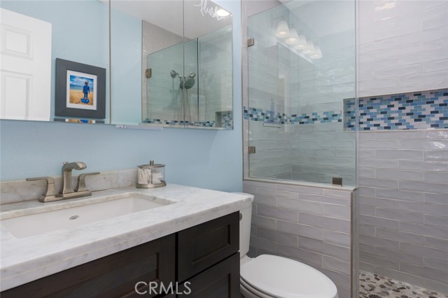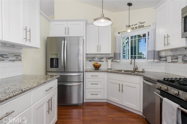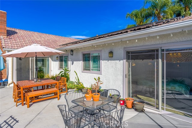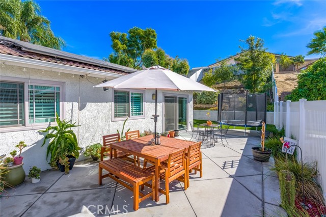 Beautiful 3-bedroom Bel Air single-level home! This inviting home has been lovingly cared for and remodeled. As you enter the newer front door, you will find a spacious living and dining area ideal for both everyday living and larger gatherings. The kitchen, which has been remodeled to include additional cabinetry and counter space, also features stainless appliances and stone countertops. A slider grants you access to an atrium that offers additional outdoor space and allows for even more bright natural light in the home. The primary suite includes a bath that features a resurfaced shower and upgraded floors, countertops, and flooring. This floorplan includes two nice sized secondary bedrooms. Secondary bath has been remodeled and includes a custom-built shower and new tile flooring. Once you’ve toured the interior, outside you will find a beautiful, spacious and low maintenance backyard with newer concrete patio, new vinyl fencing, high-quality turf, and storage shed. A retaining wall was added to create more usable space as well. Additional upgrades include high efficiency windows, leased solar panels, upgraded electrical panel, whole house fan, meticulously maintained HVAC system and newer water heater. This great walkable neighborhood features a low HOA, low tax rate, award winning schools including Running Springs Academy, an IB primary school, and El Rancho Charter School. Not only will you find quick access to the 91 freeway and 241 toll road, but excellent shopping, dining, and parks are all close by. This home is not one to miss!