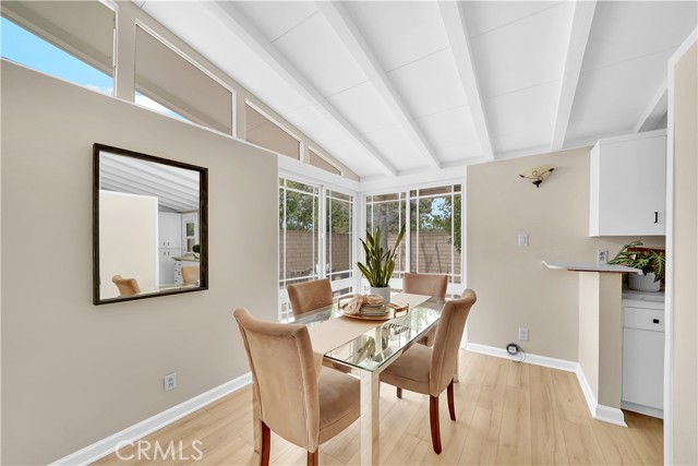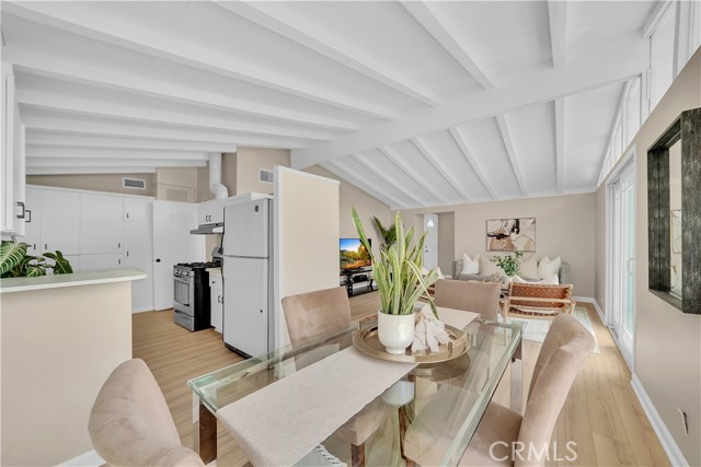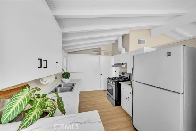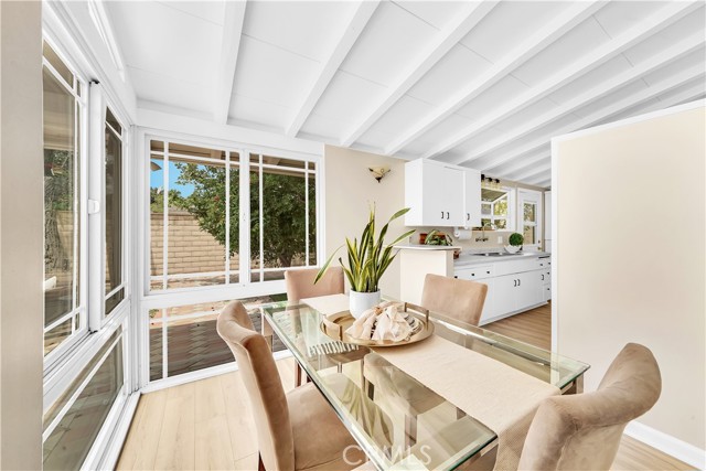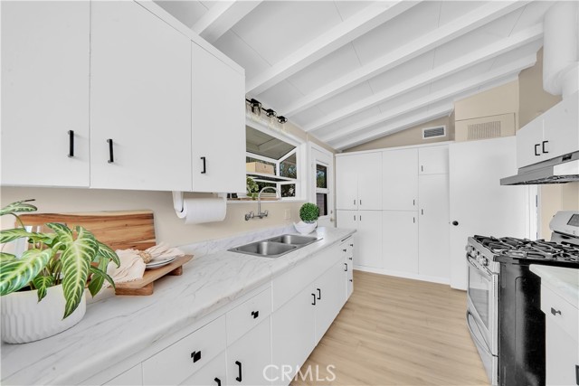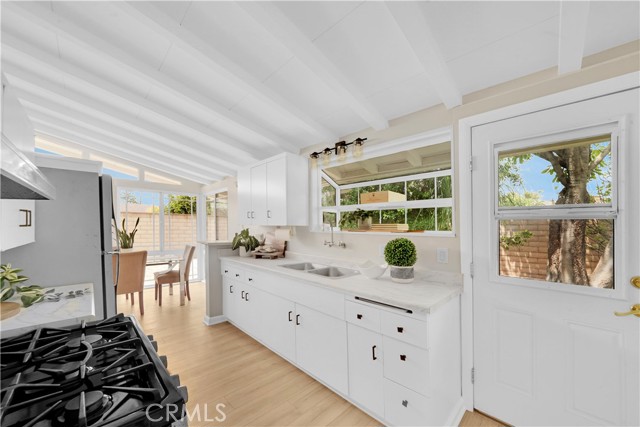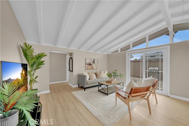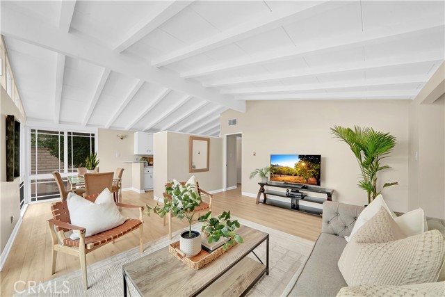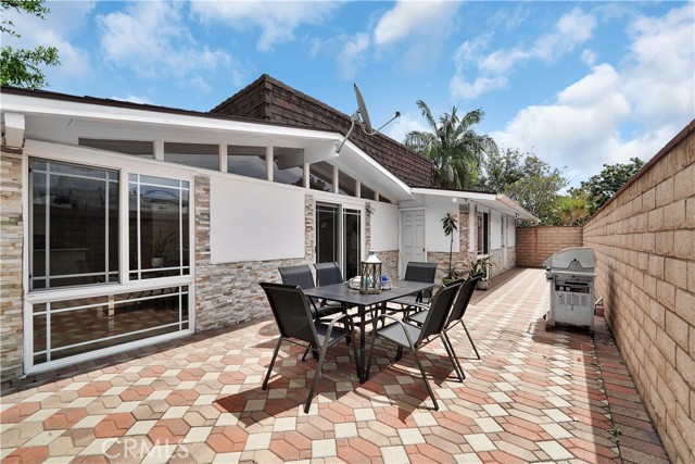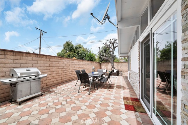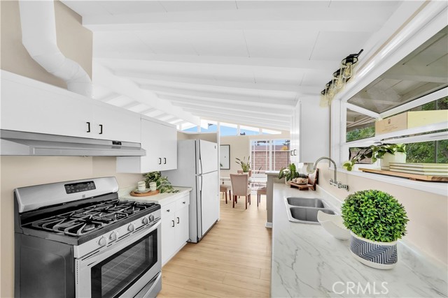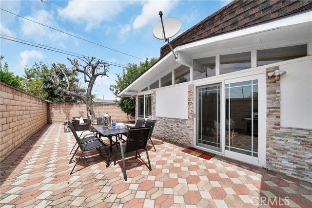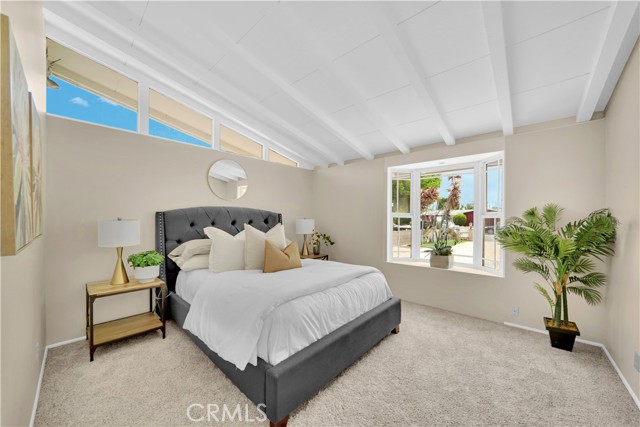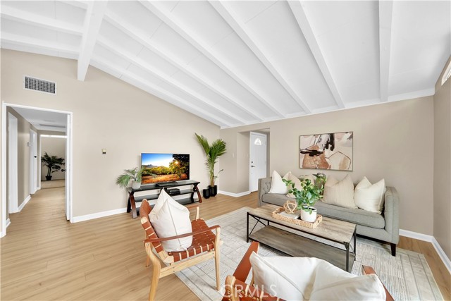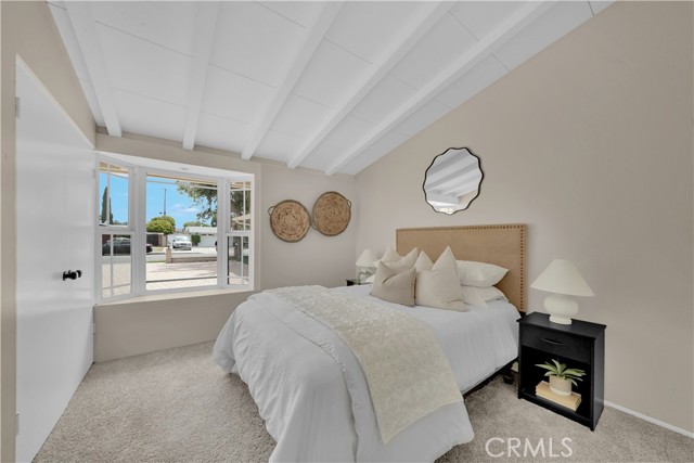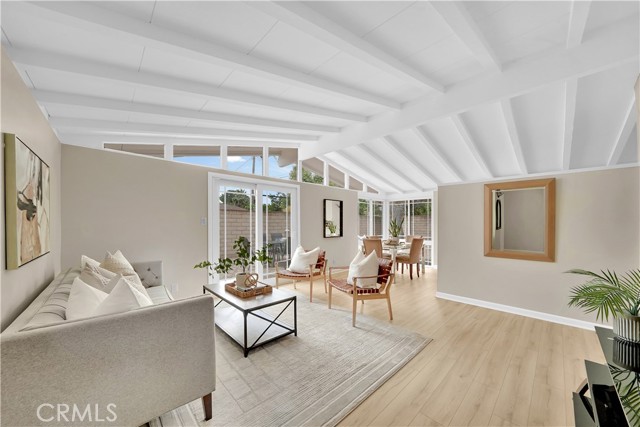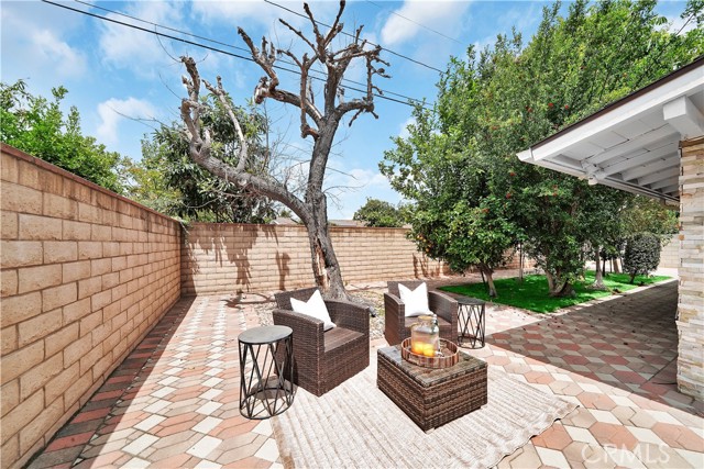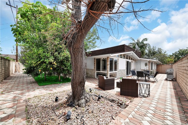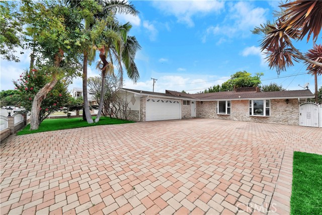 Mid-century modern ranch style home nestled in a sought after neighborhood in the heart of Anaheim. Recently updated with fresh paint, luxury vinyl flooring and plush carpet in all bedrooms. Great curb appeal with an oversized pavered driveway, iron fencing, beautiful lighting posts and decorative stone façade with custom designed centerpiece. The large driveway can easily park 6+ cars or give you room to park your RV or other toys. Enter into a spacious living room that is bathed in natural light from all the windows and large sliding door with vaulted wood beamed ceilings creating an inviting space. The sunlit eat-in dining area connects the living space and kitchen. Kitchen has new Carrera marble looking counter tops, stainless steel gas stove and plenty of storage cabinets. This single story home has 4 bedrooms. 3 bedrooms on one side of the home with a marbled bathroom and 1 bedroom on the other side of the house with an exterior access door providing potential for a rental or office space. On a 6,300 SF lot, the mostly pavered backyard offers easy maintenance and safe space for all your family’s outdoor needs with hybrid grafted citrus, pomegranate, apple and persimmon trees to enjoy. Automated sprinkler system in the front and back add to easy living. The home boasts central AC and heating for year-round comfort. Both bathrooms have a shower/tub combo and were recently reglazed, giving them a fresh update. This home offers the perfect combination of comfort, style, and convenience. Central to everything the OC has to offer. Short Drive to Disneyland, Knott's Berry Farm, Angel Stadium, Indoor and Outdoor Shopping, trendy Restaurants, Parks, Freeways and Schools. A true gem you will be proud to call home.
