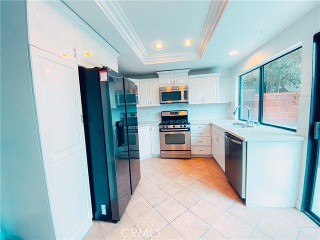 Welcome to this stunning 1418 square foot condo located in the heart of Anaheim. This incredible property has just undergone a remodel to refresh and update the space. As you step inside, you'll be greeted with a warm and inviting atmosphere, thanks to the open-concept design, high ceilings, and large windows that flood the space with natural light. The unit features three spacious bedrooms and two and half updated bathrooms, making it perfect for families or those who enjoy hosting guests. The condo offers two spacious bedrooms, each with ample closet space and large windows that let in plenty of natural light. The primary suite features a large mirrored closet, vaulted ceiling with new ceiling fan and a beautifully updated bathroom. The kitchen has been renovated with brand new appliances, modern cabinetry, and stunning quartz countertops, creating a sleek and functional space to cook and entertain. The patio area even has a pass through window and outdoor bar to add to the entertainment value of the outdoor space. One of the most unique aspects of this property is its incredible location. You'll be just a short walk away from the Anaheim Convention Center, where a variety of events are held throughout the year. And if you're a Disney fan, you'll be thrilled to know that Disneyland is also just a short walk away! Imagine being able to stroll through the park without having to worry about parking or traffic. Additional features of this stunning condo include central air conditioning, laundry, and two car attached garage. The complex itself also features a community pool, perfect for taking a dip on a hot summer day. It also has one of the lowest HOA fees in Orange County. If you're looking for the perfect blend of modern convenience and unbeatable location, this condo is the one for you. Don't miss out on the opportunity to make it your own!