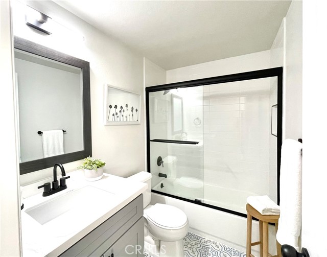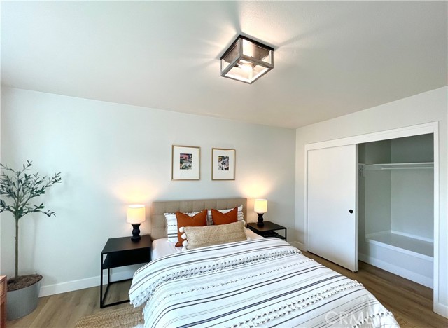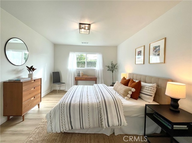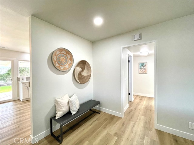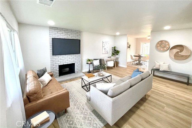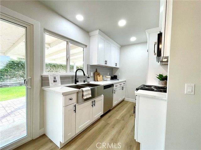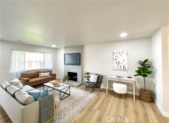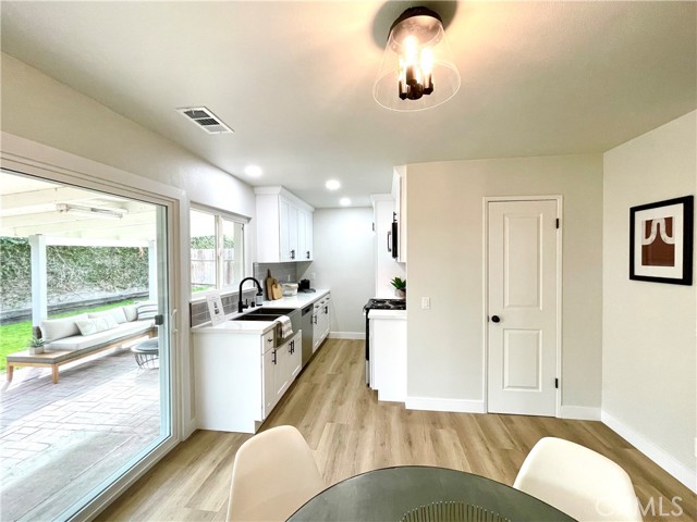 Come see this beautifully remodeled property--all with permits. New modern kitchen includes shaker cabinets, quartz countertops, tile backsplash and large stainless steel sink. New Interior and exterior paint, new vinyl plank flooring, new baseboards, new light fixtures, and new vinyl windows. Recessed lighting throughout with new decora electrical outlets and switches. Bathrooms are remodeled with new flooring, toilets, sinks, vanity and countertops. The garage has a convenient garage door that opens to the rear yard. The house is located about one mile from Disneyland, Downtown Disney, and the Block in Orange. Low energy bill due to solar panels (no outstanding lease agreements).