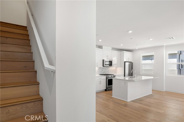 Welcome to 100 West, a new gated community located in Anaheim, centrally located in the heart of Orange County minutes to major entertainment & shopping centers such as Disneyland, Honda Center, Angel Stadium Walk. Homesite 3512 is adjacent to community recreational area. The Towns- Plan 2 features 3 bedrooms, 2.5 bathrooms, and is 1,296 sq. ft, with a 2 car garage. Upon entering the home you're greeted by a welcoming foyer. As you head upstairs, you'll find an open concept living area with a charming balcony, where you can enjoy fresh air and breeze. The kitchen includes designer selected soft white acrylic cabinets, marbleized quartz countertop, white & gray mosaic backsplash & KitchenAid appliances. Welcome to your personal sanctuary, the primary bedroom! Step into a haven of comfort and tranquility, where you can unwind and recharge. Enjoy the luxury of a private shower and with a spacious walk-in closet. The secondary bedrooms provides flexibility for guests or a home office. Embrace Eco-friendly living with a 2kW solar system included. The community amenities include a pool, spa, two dog parks, BBQ areas, recreational grass areas, and walk-able paseos interwoven throughout. Homesite 3512,has an estimated closing date of Spring- Summer 2024.