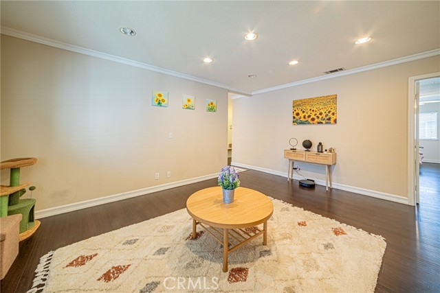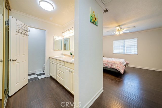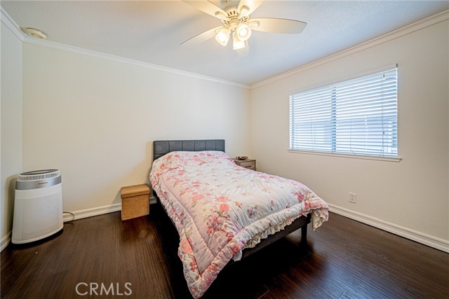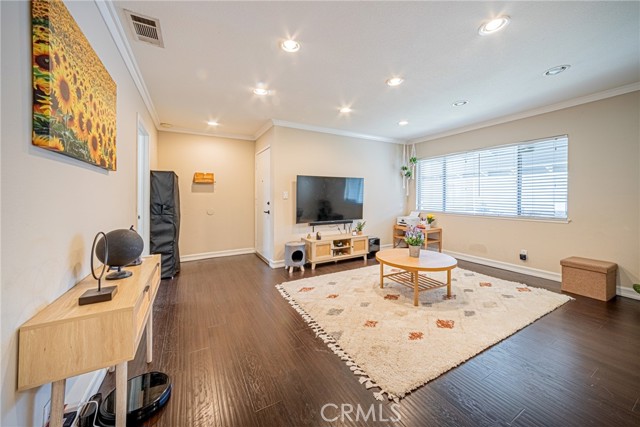 Beautiful 3 bed 2 bath condo located in Brookhurst Village. Enter the home upstairs into the open living space with recessed lights and ceiling fans in all rooms. Laminated wood floor throughout the living room and bedrooms with a nice tile floor in the kitchen. Down the hall and into the kitchen you will find a large dining area with additional beautiful wall cabinets. The area features a sliding glass door to the private outdoor balcony, perfect for outdoor entertaining. Leading to the hallway there are two bedrooms that share an updated bathroom. Separate spacious master bedroom with a shower room and large vanity area, mirror, and a privacy toilet door. Brookhurst community offers its residence a pool, playground, community laundry room, and gated. Central AC and Heat. HOA Dues Include Water, Gas & Building Insurance. Detached two covered carports plus an additional parking space with permit. Close to shopping, freeway, Disneyland and more. Please don't miss a great opportunity to own a dream home.