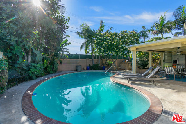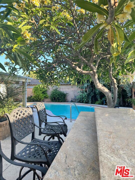This wonderful single-story pool home boasts 3 bedrooms and 3 bathrooms, exuding Pride of Ownership throughout. It has undergone extensive renovations inside and out, including beautiful hardwood floors, crown molding, recessed lighting, and dual pane windows. The grand double-door entry leads to a spacious living room, and the tile entry transitions elegantly to the hardwood floors.The large kitchen has been tastefully remodeled with granite countertops, solid oak cabinets, and updated appliances. It also features a roomy sit-down bar, perfect for entertaining. The dining room opens up to the kitchen, creating an open and inviting layout.The master bedroom is a good size and includes a marble-accented fireplace, a spa-like bathroom with a separate shower and a Roman soaking tub, a walk-in closet, and direct access to the outside. Another spacious guest bedroom offers an en-suite for added convenience.The backyard is a true oasis, featuring a sparkling pool, a large covered patio with a ceiling fan, and a custom-built bar with granite counters. The built-in stainless steel BBQ, complete with a custom canvas cover, adds a touch of luxury. With the pleasant California weather, the backyard becomes an extension of your living space, perfect for outdoor gatherings.The landscaping, including hanging plants, is well-maintained and has an automatic irrigation system on a timer.
