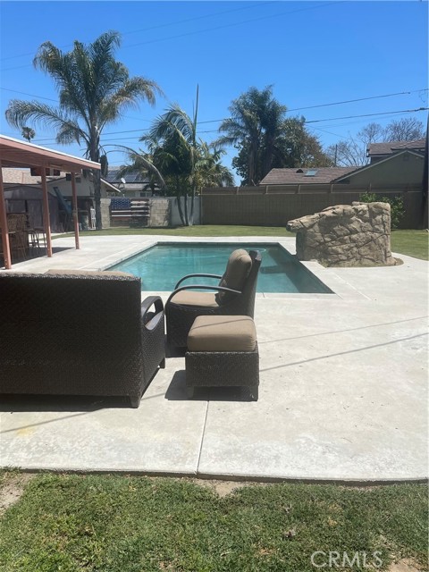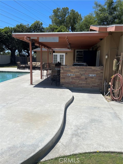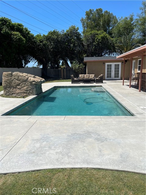 Prime Anaheim location on a cul-de-sac with a paradise, pie-shaped backyard with 12,615 sq ft yard space which is huge for the area. Newer pool with water feature, and a large outdoor bar with 8+ seating, outdoor refridgerator, Korean BBQ Cooktop, with built in sink and mounted TV. There is RV access and plenty of room to build the ADU of your dreams. No neighbors behind the back yard offering total privacy. Single level home in quiet neighborhood. Just 2 miles to world famous Disneyland, California Adventure and Downtown Disney and more. Very close to shopping, restaurants and supermarkets. Interior of home includes 4 bedrooms, and 2 baths with a living room, and a 400 sq ft TV/Family room addition that is permitted. The kitchen has plenty of counter and cupboard space with a 6 burner stove and stainless steel appliances, granite counter tops and tiling. There is a large, extra long 2 car garage, with an addition storage room. Very nice award winning schools Loara High and Madison Elementary, with beautiful Modjeska park close by. A/C is serviced yearly by professional A/C company, and runs well. Property is priced to sell, and it will not last long with all of these features and size.