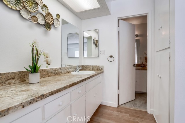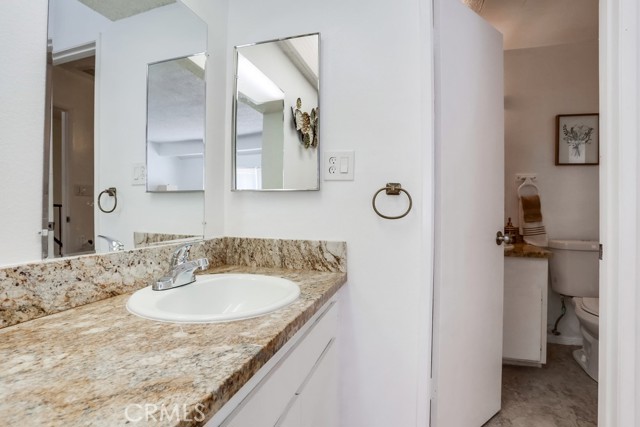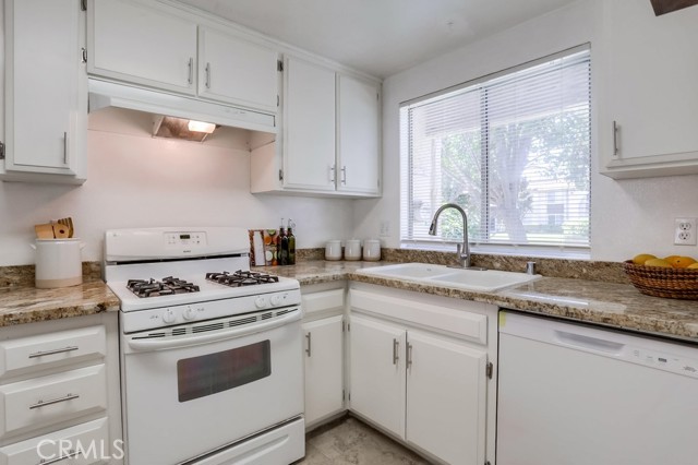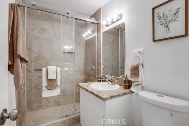 BEAUTIFULLY UPDATED CONDO IN ANAHEIM! This charming property is an excellent opportunity for first-time homebuyers and investors alike. Offering 1,072 square feet of living space, this two-bedroom, one and a half bath home is designed for comfort and convenience. The spacious living room features laminate flooring and a slider that opens to the private patio. The kitchen has been recently updated with new brushed nickel handles and hinges, granite countertops, a pass-through breakfast bar, a brand new dishwasher, a dual basin Kohler sink with a pull-away faucet, a gas stove, and porcelain tile flooring. Downstairs, you'll find a convenient half bathroom for guests. Upstairs, the en suite primary bedroom provides ample space and comfort, while the second bedroom includes a walk-in closet. The fully remodeled upstairs bathroom boasts a walk-in shower with a brand new glass door, shampoo niche, new countertops, porcelain tile flooring, and all-new fixtures including a toilet, sink, and faucet. Additional features include central AC and heating, newer hot water heater, detached 2-car garage with direct access and low HOA fees make this property even more appealing. Only 30 units in the complex. HOA includes; community pool, large greenbelt & includes water. Close to schools, parks, shopping, churches, 5 freeway, 91 freeway Disneyland and much more. Since the County land use is Single Family Residence the complex is FHA/VA approved! Don't miss out on this fantastic opportunity!