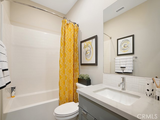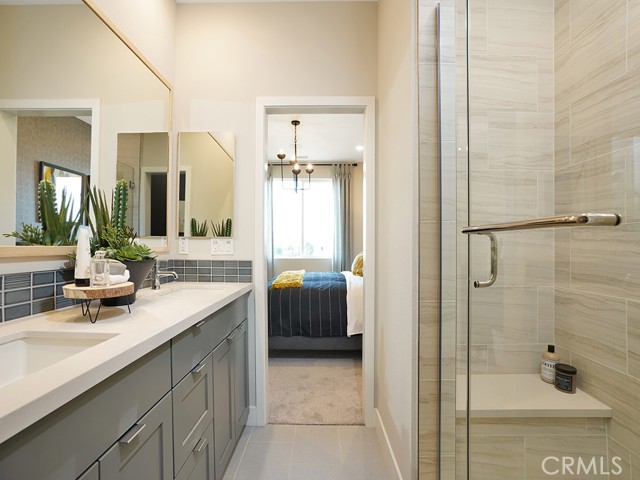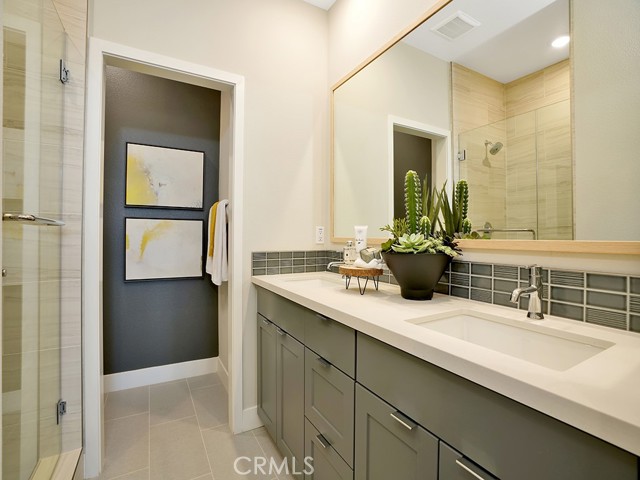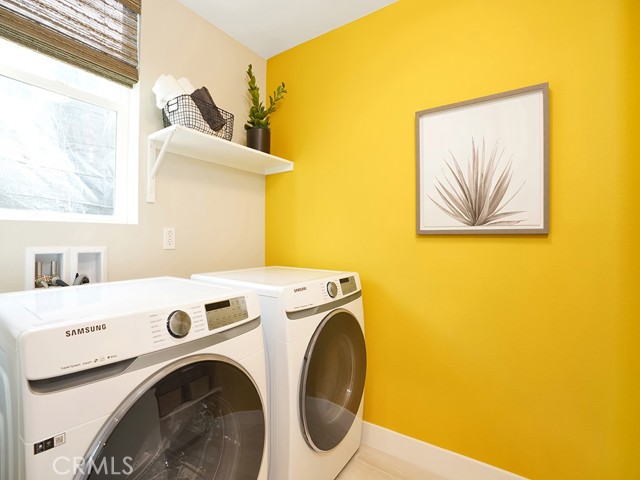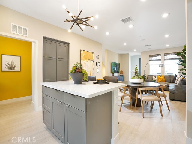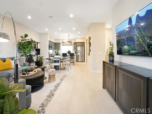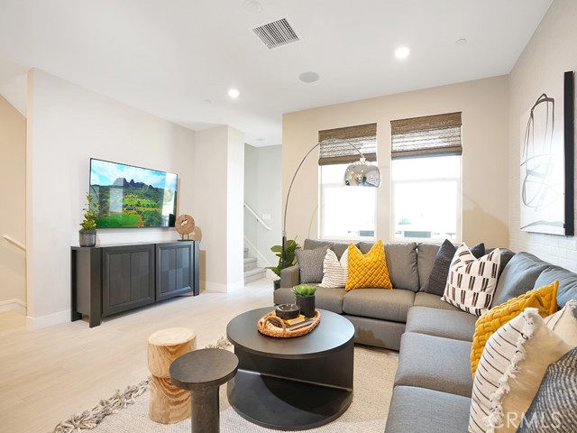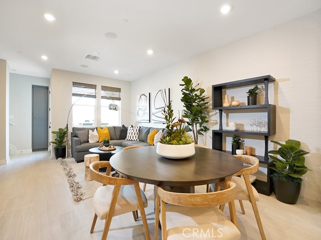 Enjoy a brand-new, highly upgraded builder model home offering our bedrooms and 3.5 bathrooms. This home is loaded with designer selected finishes, including gorgeous ash white wood flooring throughout the main living areas, custom paint and wall treatments, custom window coverings, modern light fixtures, a flat screen TV, stained wooden cabinetry throughout and much more! The chef's kitchen boasts quartz counters, full height tile splash, a large island for extra seating, pantry and stainless steel appliances including Samsung Stainless 3-Door French Door Refrigerator. Off the kitchen is a dining room and great room with a private balcony for dining alfresco. Upstairs on the third floor are three generous sized bedrooms, including a primary suite with walk in closet, custom wallpaper, designer light fixture and drapes and spa-like bathroom with framed mirror, tile surround at shower with glass enclosure, quartz counters and tile splash at the dual sink. The secondary bedrooms include custom wallpaper or decals, drapes, and a shared bath with decorate tile and upgraded counter at the sink. Downstairs on the first floor enjoy a fourth bedroom with a gorgeous wall treatment and bathroom with custom paint and framed mirror. The first floor bedroom is the perfect space for children, guests, a den, home gym, or home office. Home-shoppers will also appreciate the laundry room including the side-by-side Samsung washer and dryer, and 2-car side by side garage, surface mount LED can lighting, and ceiling mount music speakers with wall volume control. Smart home features include Brilliant Home Control (giving you touch and voice control over lighting, climate, cameras, music, intercom and more), Ring Video doorbell, a smart thermostat and smart lock at entry door. This gorgeous home is one of 59 brand new townhomes built in the intimate neighborhood called Townes at Magnolia by Melia Homes. Tour today and take advantage of all that this home has to offer!