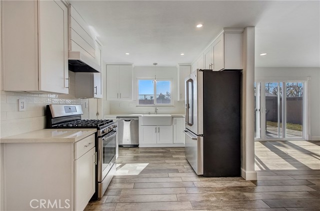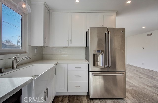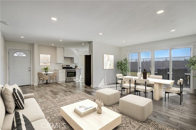 Upgraded 3 bedroom home in highly sought after part of West Anaheim boasts an open floorplan with tons of natural light! There are wood looking tile floors throughout the living space, dual pane windows, fully remodeled kitchen with crisp white cabinetry, subway tile backsplash, quartz counters and stainless steel appliances. There is recessed lighting in the living room which overlooks your very spacious backyard. Remodeled bathrooms including cabinetry, fixtures, lighting and a subway tile bath/shower surround. This floor plan includes 1/2 bath in the primary bedroom that can be expanded to include a nice shower. Don’t be fooled by the need for paint on the exterior! This home is adorable and ready for you … Just bring your paint and supplies and make this into the personal gem just for you! The backyard is very large and waiting for its new owners to bring it to life. Enjoy Southern California dream with ocean 8 miles to west and Knotts Berry Farm a few minutes east. Ocean allowing for excellent breezes. This location is unmatched with a short distance to freeways 405, 22, 91, & 5 and shopping. A true Gem that you won't want to miss!