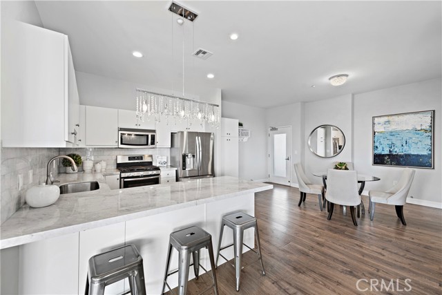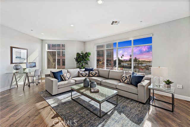 Discover a vibrant collection of architectural details in this upscale custom loft. The open concept plan showcases a high level of upgraded appointments and a floorplan design you won’t find anywhere else. Spanning approximately 1953 SF, this top-floor condo residence boasts a modern urban loft concept with a coastal vibe. High ceilings and large windows provide tons of natural light. Upgrades include luxury plank flooring, Carrera marble countertops in the kitchen and baths, upgraded cabinetry and appliances, designer paint, and substantial custom closets that provide more than ample storage. This is arguably the best location within Harbor Lofts, with unobstructed views of Disneyland fireworks at night. Community amenities include a pool, fitness center, BBQ, and controlled entry access. Live within walking distance of the Anaheim Packing House, the Anaheim Brewery, and a thriving downtown area with a variety of restaurants, galleries, and shops. Harbor Lofts is close to Disneyland, Downtown Disney, and all major freeways.