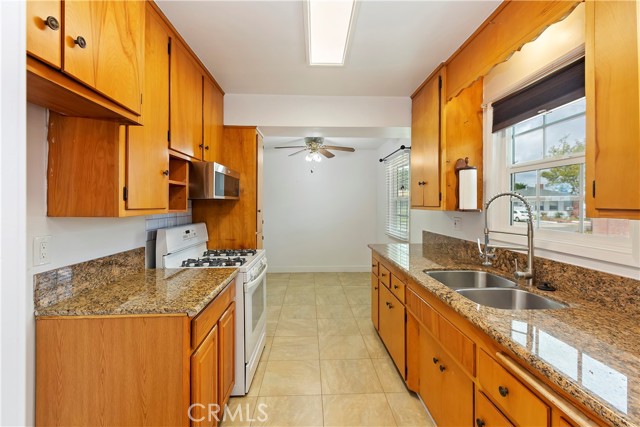 Sharp family home in great move in condition. Open and airy floor plan. Large living room with updated flooring and cozy fireplace. Updated kitchen with granite countertops and new flooring. New doors and quality double pane windows. Good sized bedrooms with ceiling fans. Newer Central air and heating systems. Updated and newer electric panel. potential Full RV access . Long driveway for extra parking. Well maintained and extra large backyard with mature fruit trees. Sprinkler systems font and backyard. Block wall fenced. 2 car attached garage with access to backyard. Close access to shopping centers. Ready to move in !