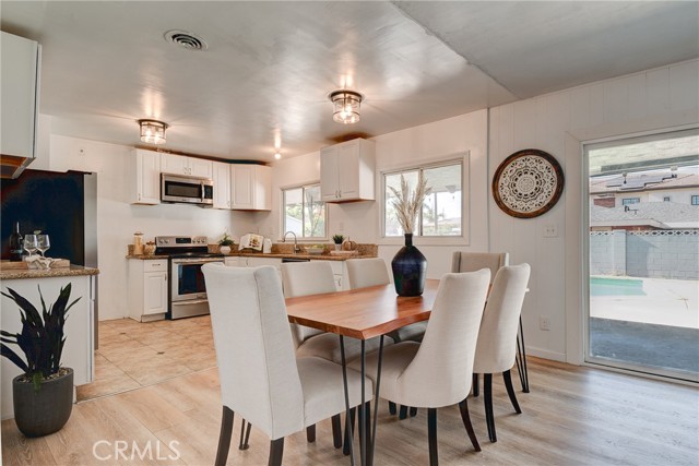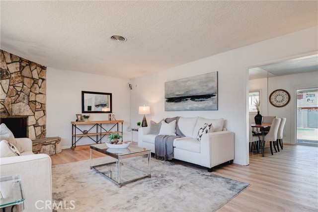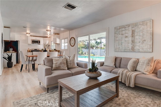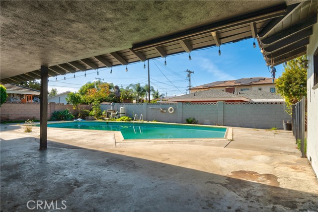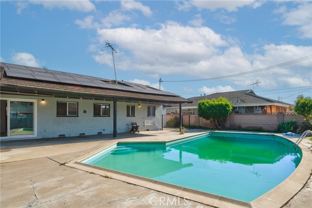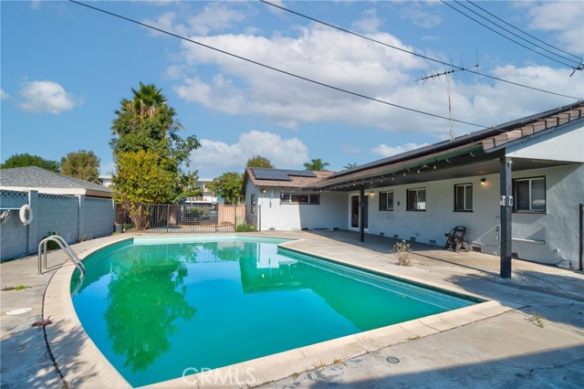 Single story ranch style pool home located in the heart of Anaheim! Just inside you’ll find a light and bright living room highlighted by a wood burning flagstone fireplace. Step around the corner and you will find an open kitchen with an eat-in dining area, granite counters, stainless steel appliances and a lovely view of the sparkling pool! Primary bedroom includes a generous sized ensuite bathroom featuring granite counters, dual sinks and travertine flooring. This home has solid surface flooring throughout! Other amenities include dual paned windows, “owned” solar and ceiling fans. Spend summers lounging in your pool soaking up the California sunshine and winters dining deck side under your solid covered patio! Like to golf? Just around the corner from Dad Miller golf and driving range. Have a dog? Just down the street from dog friendly Maxwell Park. In district for sought after and well ranked Walt Disney Elementary!