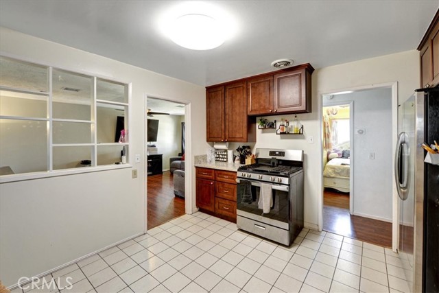 Welcome to this delightful 3-bedroom, 2-bathroom home, where timeless charm and limitless possibilities converge. Situated in a tranquil neighborhood, this property boasts a variety of appealing features that make it a true gem waiting to be polished. Upon arrival, you'll be greeted by a picturesque front porch that invites you to relax and enjoy the peaceful surroundings. As you step inside, the oversized family room steals the spotlight with its abundance of windows, flooding the space with natural light and creating an inviting ambiance. The wood floors throughout the entire home add a touch of elegance and warmth, enhancing its character. The heart of the home showcases a light and bright living room complete with a cozy fireplace, ideal for creating cherished memories with loved ones. The open concept kitchen, equipped with a stove and dishwasher, offers the perfect canvas for cooking enthusiasts to design their dream space. With three generously sized bedrooms, there's ample room for the whole family to grow and thrive. The inclusion of an inside laundry area adds a convenient touch, making daily chores a breeze. The property also features a formal dining room, setting the stage for memorable gatherings and celebrations. Outside, discover the vast potential of the large lot, offering endless possibilities for outdoor living, gardening, or even the addition of your very own private oasis. It's important to note that this home may require some tender loving care (TLC), but for those with a vision and a passion for transforming spaces, this is an exciting opportunity to personalize and bring out the true potential of this residence. Don't miss the chance to make this charming property your own, where you can create a haven tailored to your unique style and preferences. Great location on this gem, minutes away from Disneyland, shopping centers, restaurants, and the 5-freeway. Don't miss out!
