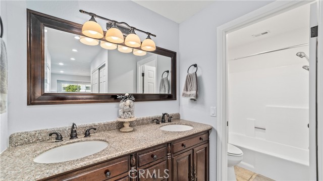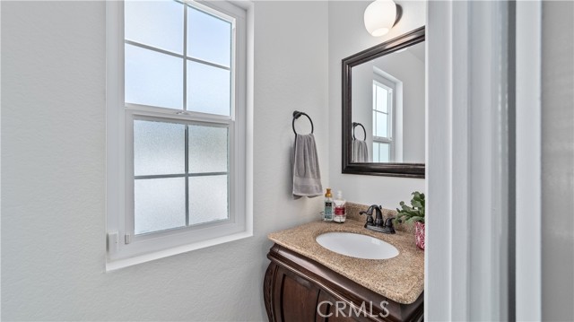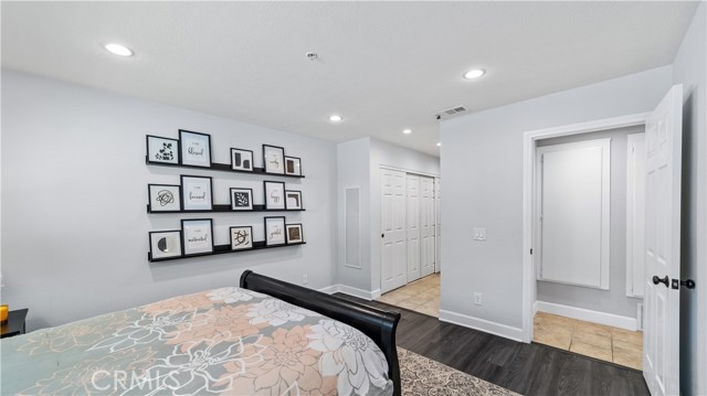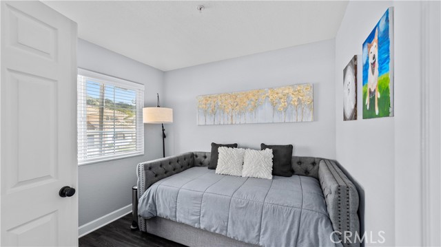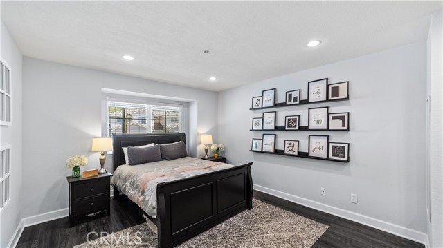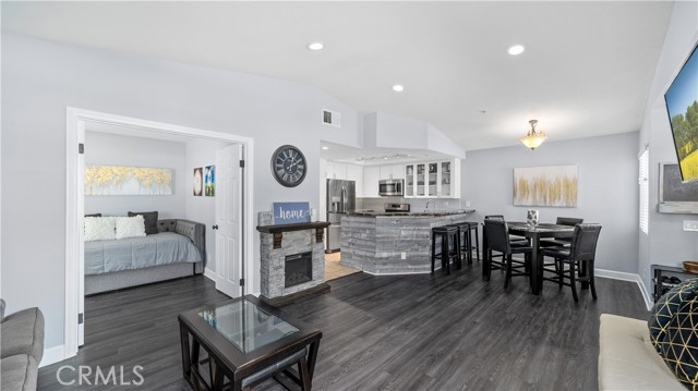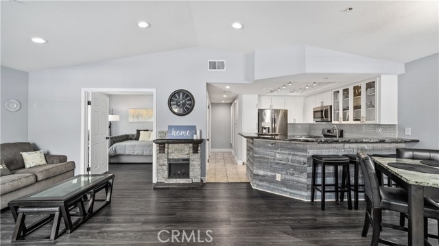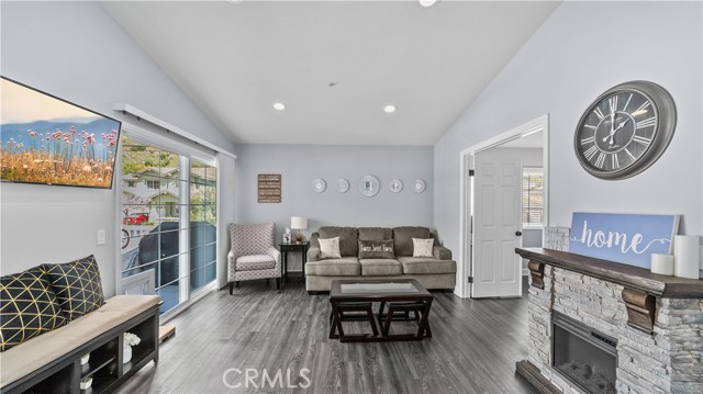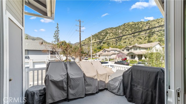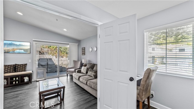 This stunning upstairs condo features luxurious LVP flooring and recessed lighting throughout, creating a bright and inviting atmosphere. The open-concept layout seamlessly connects the living room, dining area, and kitchen, perfect for entertaining or everyday living. The kitchen is a chef's delight with beautiful granite countertops and elegant white cabinetry, offering ample storage and workspace. Just off the living room, you'll find a versatile den that can serve as a second bedroom, home office, or additional living space, catering to your lifestyle needs. This unit boasts 1.5 bathrooms, including a convenient half bath for guests and a full bathroom with a dual vanity sink, ensuring comfort and privacy. Step out onto the balcony directly from the living room and enjoy a peaceful outdoor retreat, ideal for relaxing with your morning coffee or evening unwind. Additional features include a one-car garage and an extra parking space, providing plenty of room for your vehicles. Residents of Crystal Canyon Community enjoy access to a range of amenities, including a tennis court, pool, and spa. Plus, the location is unbeatable—just a short distance to the vibrant entertainment of downtown Azusa and the area's beautiful hiking trails.