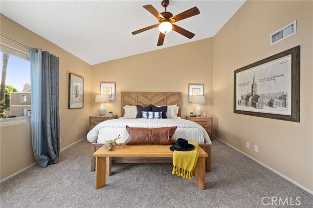 Upon entering this beautiful townhome, you will find an open floor plan, featuring a living room with a cozy fireplace, powder room, kitchen and dining room that leads out to a spacious tree-shaded patio. Upstairs is the large, light-filled primary bedroom with abundant closet space and an ensuite bathroom. The second story also includes two guest bedrooms, brand new carpet and a second full bathroom. An attached, two-car garage has a washer and dryer and plenty of storage. The location, at the end of the street, offers additional privacy while also offering easy access to freeways, shopping, dining, Azusa Pacific University and Citrus College. Just steps from the home, is the Stonewood Community’s sparkling pool and spa.