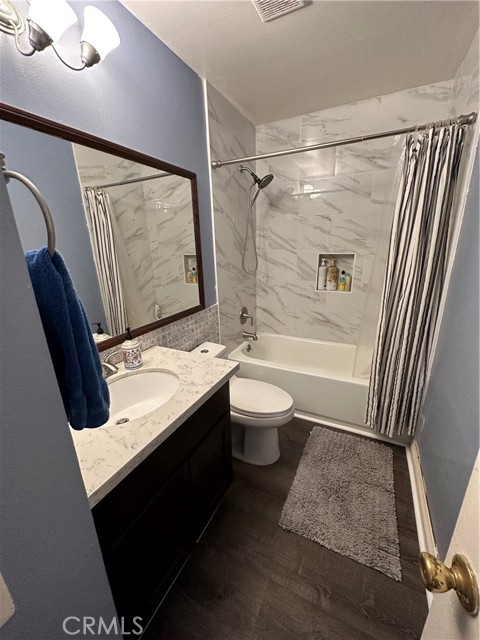 Beautiful, turnkey, end unit condominium located at the foot of the San Gabriel Mountains! Spacious open floor plan living room, dining area, kitchen and a half bath; all with newer vinyl plank flooring. The open kitchen is perfect for entertaining with plenty of countertop space and cabinet storage. The 2nd floor features 3 spacious bedrooms with large closets and newer vinyl plank flooring through the upstairs. Upstairs bathroom has been fully remodeled with a new bathtub and marble tile around the tub. Newer central AC and all ducting replaced, an interior laundry area and a newer vinyl fenced in backyard with a lot of privacy; perfect for entertaining. There is a 2 car carport with storage closet attached to the backyard for easy access to vehicles. Community features a swimming pool, a club house, and a basketball court. All within close proximity of great schools, shopping centers, and freeways. A must see!!!