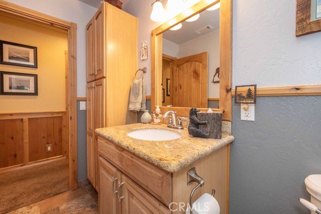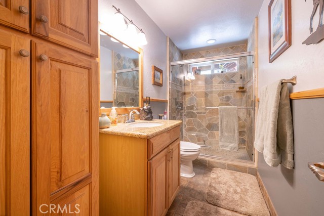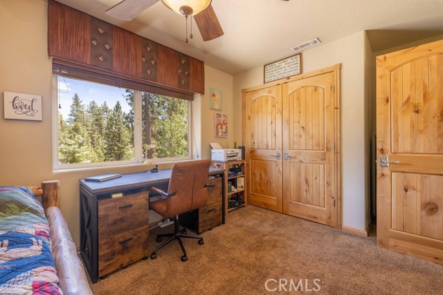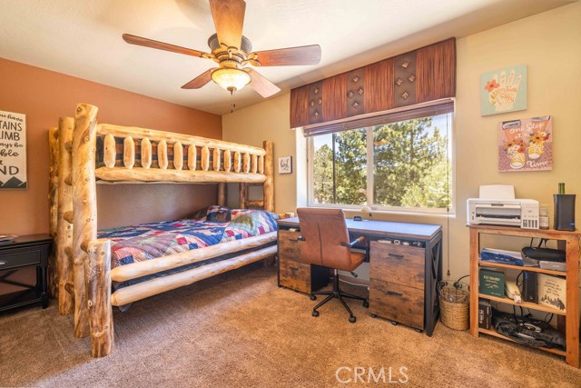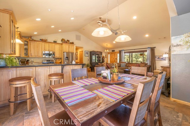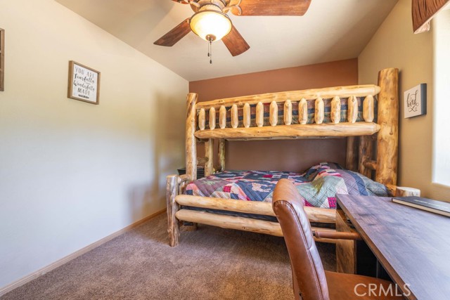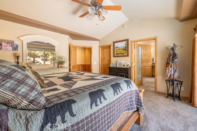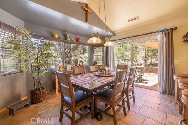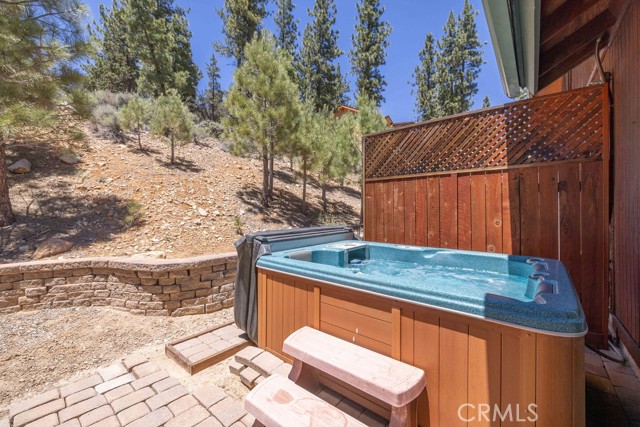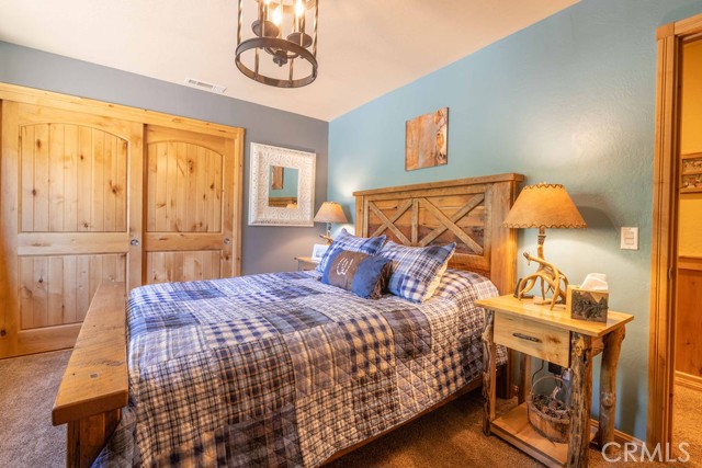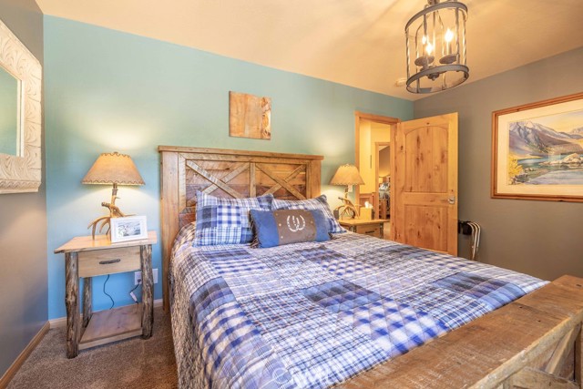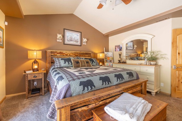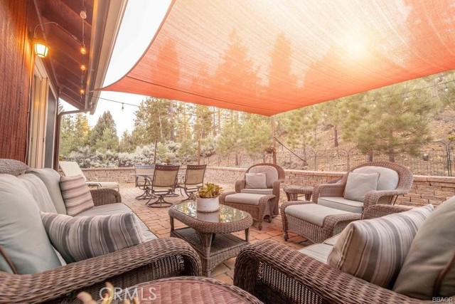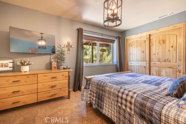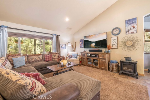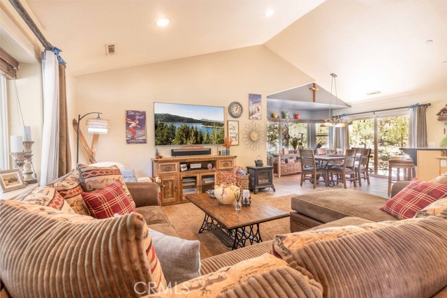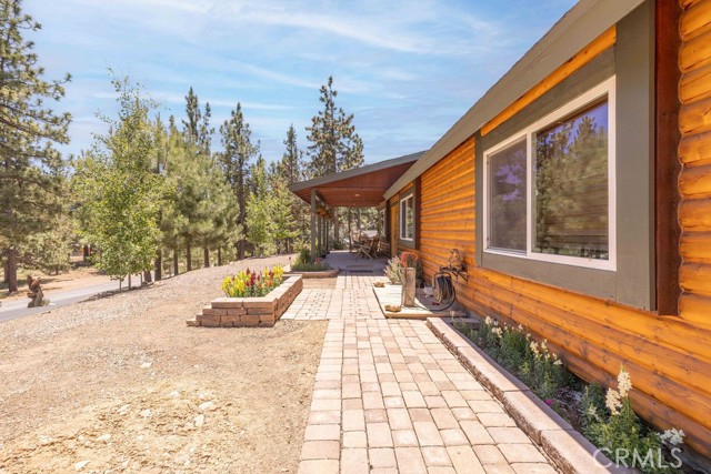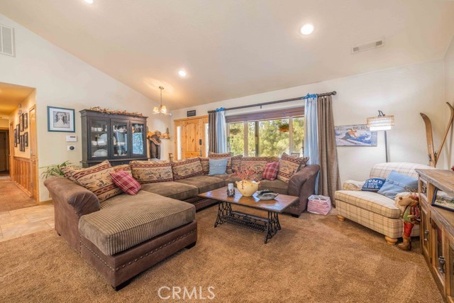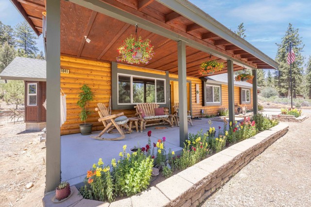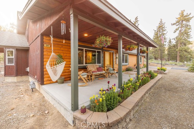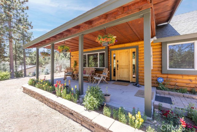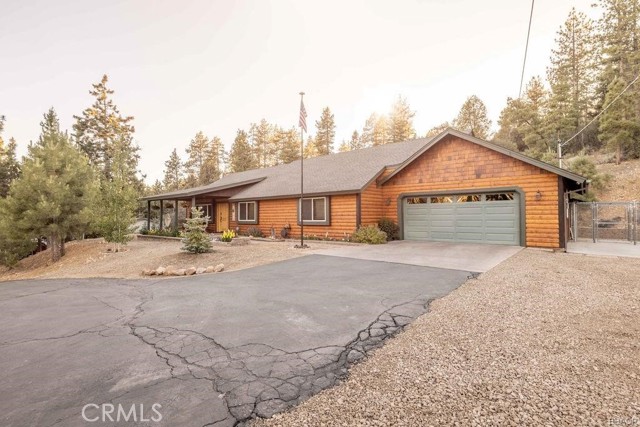 Rare Find at Van Dusen! A gorgeous retreat on over 3/4 of an acre, right at the entrance of the National Forest and historic Holcomb Valley! This single-story, log-style home embodies serene mountain living. The winding driveway, flanked by trees, enhances the feeling of seclusion, leading you to a beautifully designed home. Step into a great room with vaulted ceilings, where the living room, kitchen, and dining room seamlessly connect. Well-insulated throughout, including dual-pane windows and doors, plus radiant floor heating! The kitchen is a chef’s delight, featuring granite countertops, knotty alder cabinets, tile flooring, and stainless appliances. The spacious dining room is perfect for family gatherings. Custom features like the wainscoting down the hall enhance the aesthetics! There are 3 spacious bedrooms and 2 bathrooms, including a master suite with a walk-in closet and access to the outdoor hot tub. Both bathrooms beautifully designed, with the master bathroom also offering a deep jetted tub and a large stand-up shower. Outdoor living is a breeze here with a covered front porch and back patio with paver stones, a canopy for shade, and string lights to set the mood. The oversized 2-car garage, ample outdoor parking space for a boat or RV, and a solar-lit flagpole complete this exceptional property. Close to grocery stores, Big Bear Lake, great dining, and more. Enjoy easy access to incredible mountain biking, hiking, rock climbing, and endless off-road adventures!