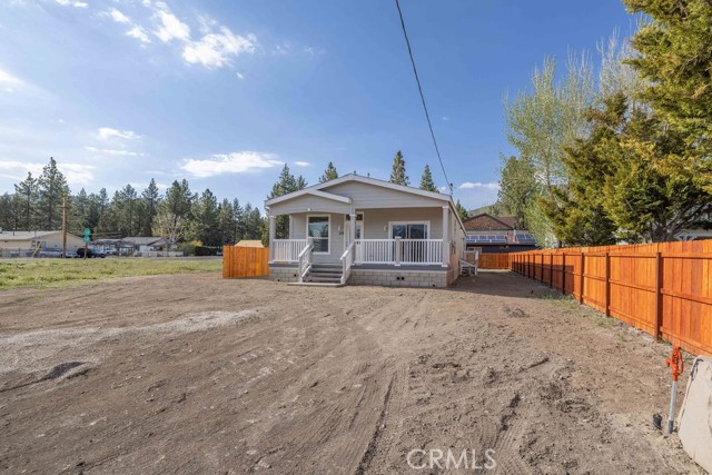 BE THE FIRST TO ENJOY THIS RECENTLY CONSTRUCTED SINGLE STORY MODULAR HOME IN BIG BEAR CITY BOASTING 4 BEDROOMS & 2 BATHS, PROVIDING A THOUGHTFULLY DESIGNED LAYOUT ~ Minutes to airport, ski slopes, lake & grocery stores ~ Nestled on a partially fenced level lot, you can enjoy your morning coffee or relax in the afternoon on the covered front porch with maintenance-free trex decking ~ The spacious kitchen features an abundance of upgraded cabinetry & storage, adorned with sleek solid surface counters & Whirlpool stainless steel appliances ~ Upgraded farm sink in the island and an additional work station complete the kitchen which is open to the dining & living room for an open floor concept ~ Large living room with cozy gas fireplace ~ Upgraded vinyl flooring in all the traffic areas and upgraded windows ~ Carpet in the bedrooms for warmth ~ Dual pane windows ~ Fire sprinkler system ~ Central forced heat fueled by natural gas ~ Just off the hallway, you'll find a separate entrance and laundry area, offering a mud area to kick your shoes off and snow gear during the winter ~ The primary bedroom is generously proportioned and includes an en-suite bathroom, complete with dual sinks, shower, and a walk-in closet that provides ample space for your wardrobe ~ 3 more bedrooms plus a bathroom down the hall ~ Large front yard ~ Don't miss this opportunity to make this beautiful house your new home.