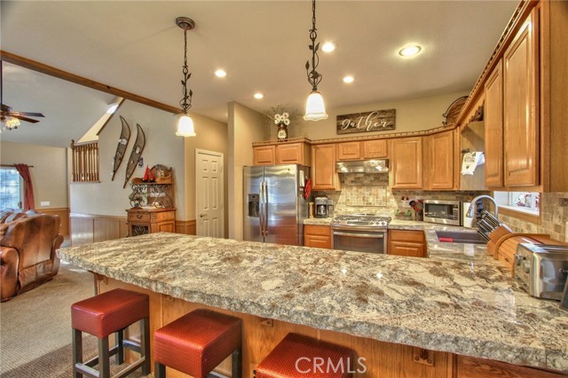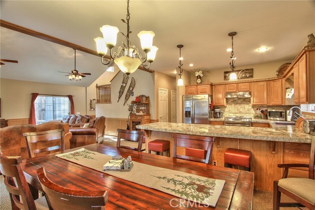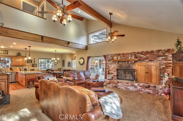 This stunning mountain home offers everything you need for the perfect family home or second home getaway. Boasting 4 bedrooms and 3 bathrooms including a full bed and bath on the lower level. The large living room opens into the kitchen and dining area, featuring vaulted ceilings with wood beams, and abundant natural light. The chef’s kitchen with granite countertops and huge breakfast bar, stainless steel appliances, and beautiful custom cabinetry. The spacious family room boasts a custom pool table and a cozy fireplace. On the upper level the primary bedroom with a full bathroom offers privacy and space. The second level also has two additional bedrooms and a bathroom. No detail has been spared in this charming and impeccably decorated hideaway. Step outside into the amazing back yard with an expansive deck, hot tub and fire pit to enjoy gorgeous views of the mountain and wooded area. Ample parking with a huge drive with space for RV or boat parking and a two car garage. Just moments away from Bear Mountain Ski Area. This home truly embodies mountain living at its finest.