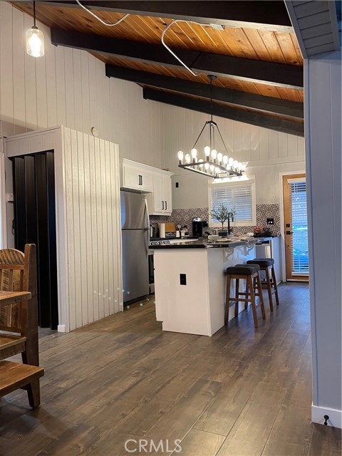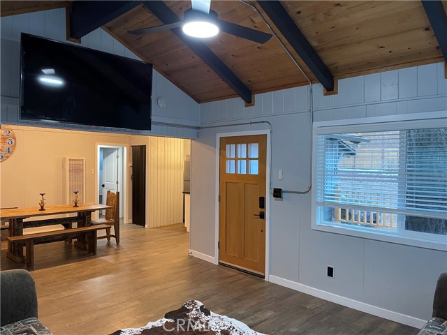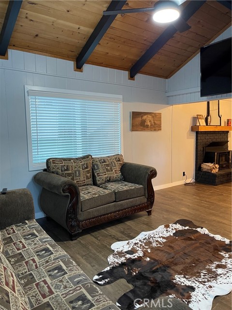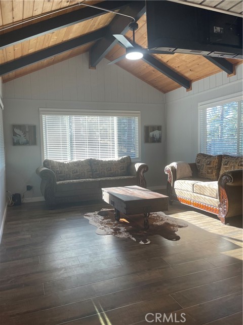 Experience a blend of contemporary design and rustic charm in this turnkey Big Bear City cabin on Greenspot Blvd. Vaulted ceilings, black and white accents, and quartz countertops highlight modern upgrades. Both bedrooms feature energy-efficient mini split units. Appliances, including a stackable washer and dryer, are included. This Airbnb-ready cabin boasts a 4-person jacuzzi tub for relaxation after a day on the slopes, just 5 minutes away. Your ideal mountain retreat awaits. Furniture may be included for the right price. Motivated seller!