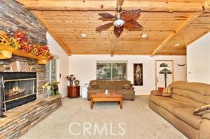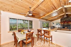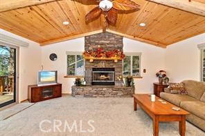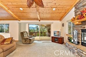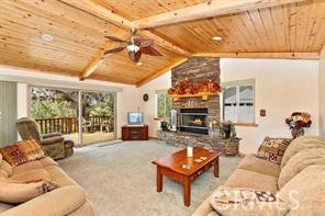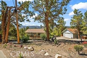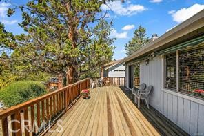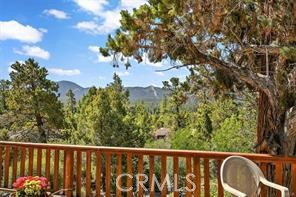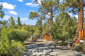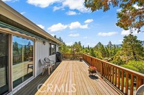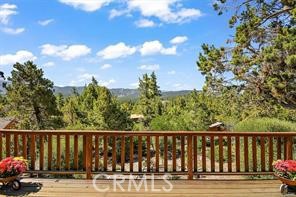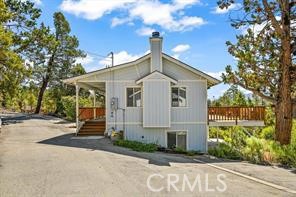 HUGE PRICE REDUCTION! A must see! This charming two bedroom, one and 3/4 bath in beautiful Whispering Forest has views, views, views of Bear Mountain, Snow Summit, and San Gorgonio. Located on well over half an acre, with pine and oak trees providing shade and greenery year around. Adjacent to the national forest and excellent hiking trails. This unique mountain home has an open floor plan. Kitchen and living room has T & G log beamed ceilings and opens up to an outside deck that is great for entertaining. Downstairs offers two bedrooms and one bath with patio access. Minutes from village, ski slopes, and beautiful lake. Enjoy the fresh mountain air and truly special surroundings. Plenty of room to do an addition, RV & boat storage Would make a great full time or vacation home.