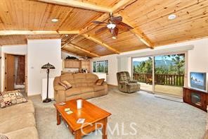 InteriorFeatures Information | Beamed Ceilings, Ceiling Fan(s), High Ceilings, Living Room Deck Attached |