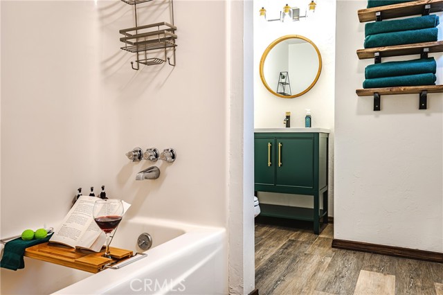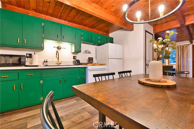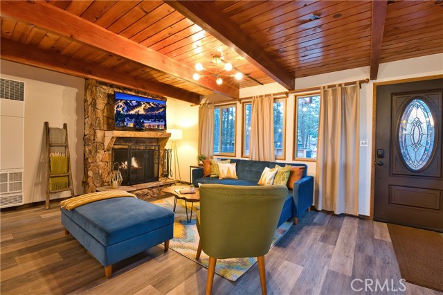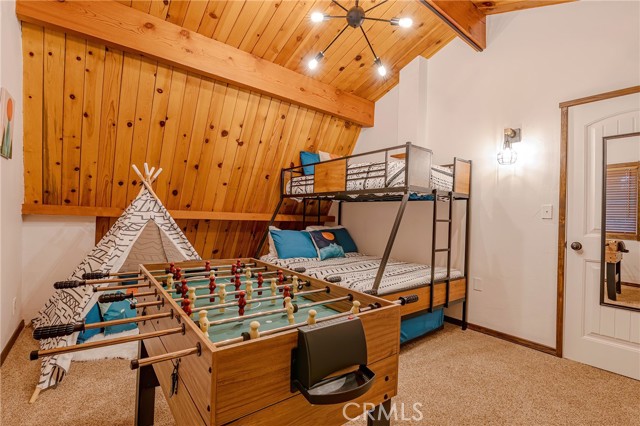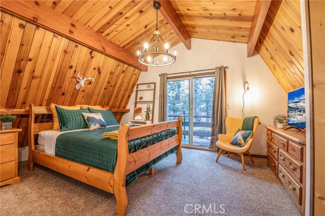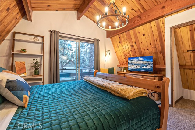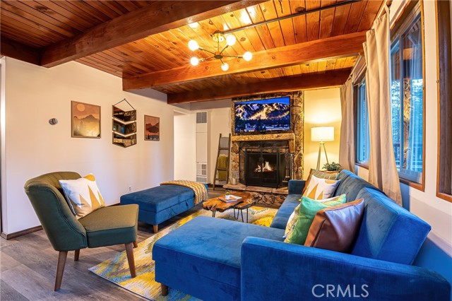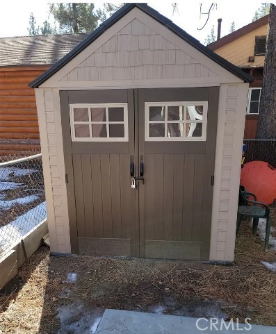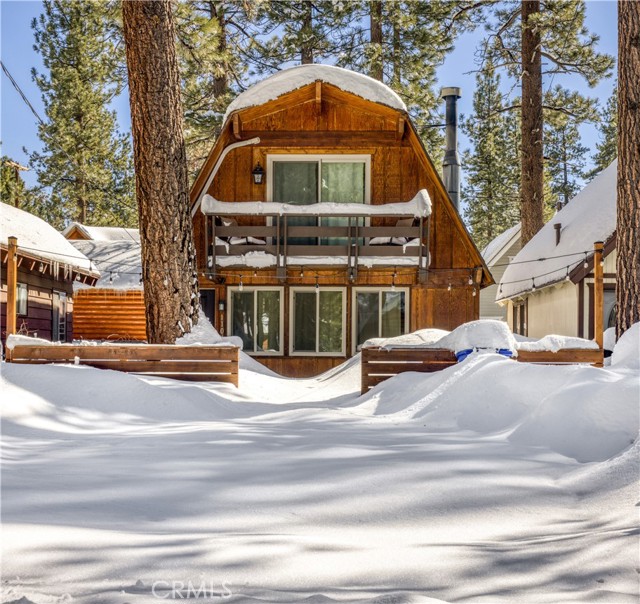 This is a perfect, cozy and updated Gambrel on a quiet, tree lined street. Open and airy with large dual paned windows, T&G ceilings and a wood burning fireplace. Cabin has two large upstairs bedrooms. The primary bedroom has its own private deck. Beautiful and updated kitchen with lots of cabinet space and updated quartz countertops. The front has a patio, conversation area with a fire pit. Backyard has a large patio, newer hot tub, BBQ and a storage shed for all your gear/supplies. This home is close to Big Bear Snow Play, shopping, Alpine Peddle Path, Wyatt's for Oktoberfest, the lake and the ski resorts! This is a busy vacation/short-term rental averaging $50K+ per year and five-star reviews for the last 2 years. A perfect place to make both great memories and passive income!