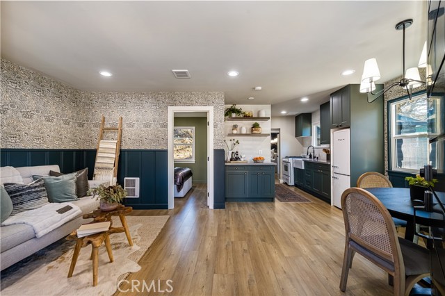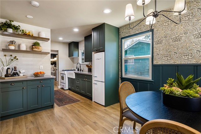 Another beautiful home meticulously remodeled and designed by Tarek and Heather El Moussa from HGTV!! They spent months reimagining this home from top to bottom! No expense was spared on the transformation of this 2 bedroom, 1 bathroom mountain hideaway. This home is pristine and the many designer touches are highlighted by all the natural light. Whether you are looking for the perfect vacation rental, a permanent residence, or a peaceful getaway retreat, this home is for you! Multiple accent walls, hand selected designer lighting and fixtures, and charming appliances are just some of the custom touches that make this home unlike any other home on the market. The wide plank flooring throughout the home is not only beautiful, but it is easily maintained. The chef's kitchen has been completely redone with all new shaker cabinets, beautiful Quartz counter tops, a stunning tile backsplash, a single-basin farm sink, and brand new retro appliances. The newly created bathroom is a spa like oasis with a new vanity, oil-rubbed fixtures, quartz counter tops and a custom tiled shower. Both bedrooms are good sized with ample closet space and boast the same wide plank flooring as the rest of the home. At the rear of the home there is a secondary living space complete with open-beam vaulted ceilings and a cozy fireplace. Close proximity to downtown, the lake, and the slopes makes this home perfect for any buyer. Show your most discerning buyers, they are sure to fall in love with one of Tarek and Heather's custom designed homes!!