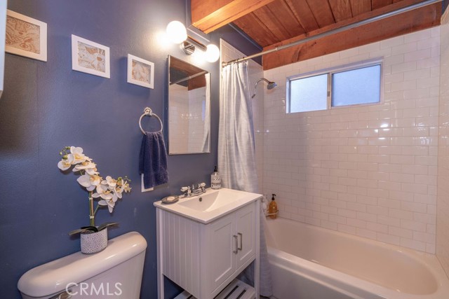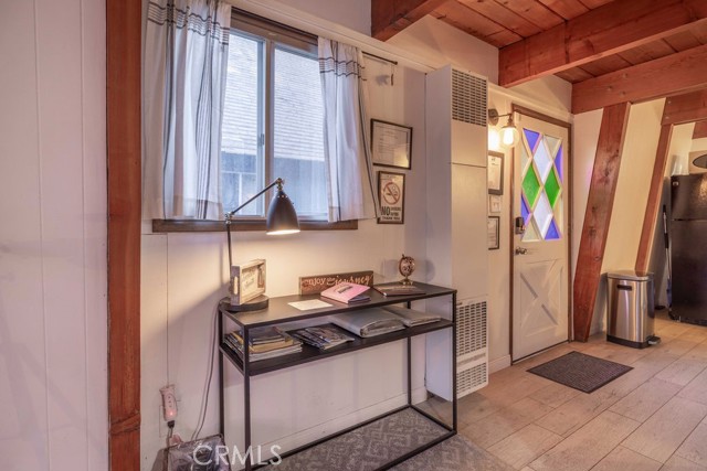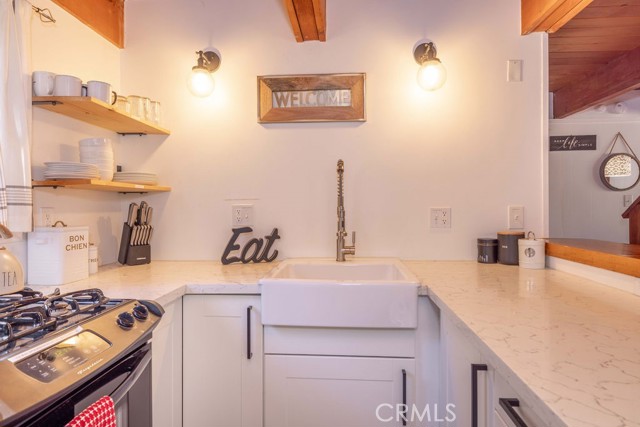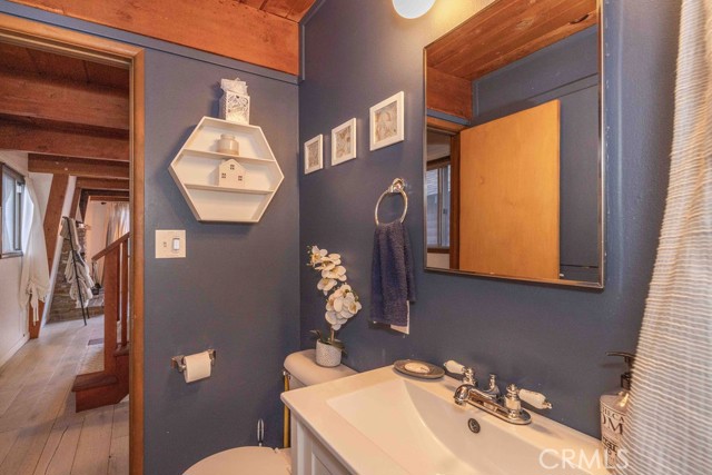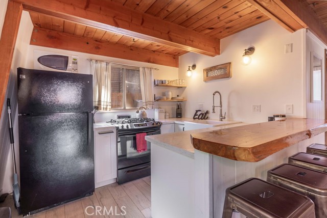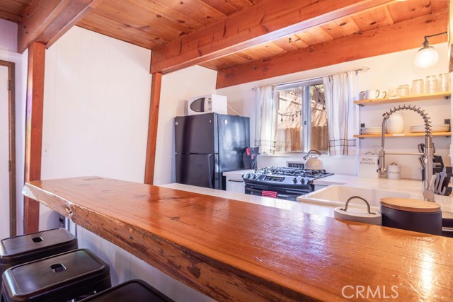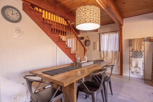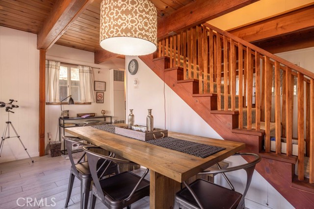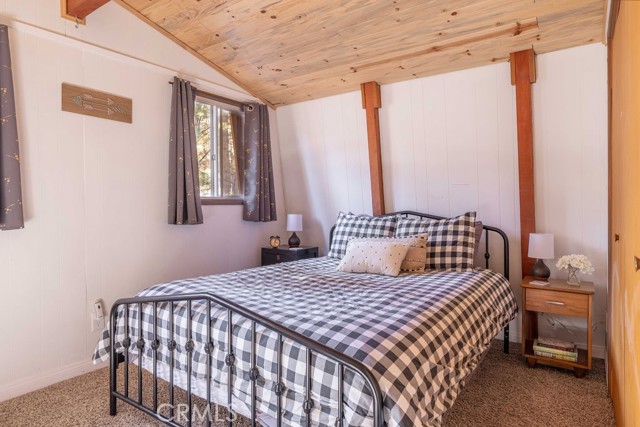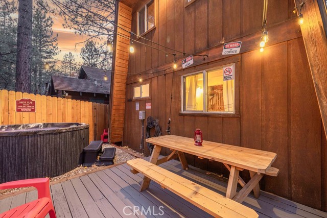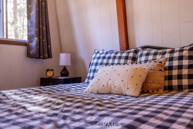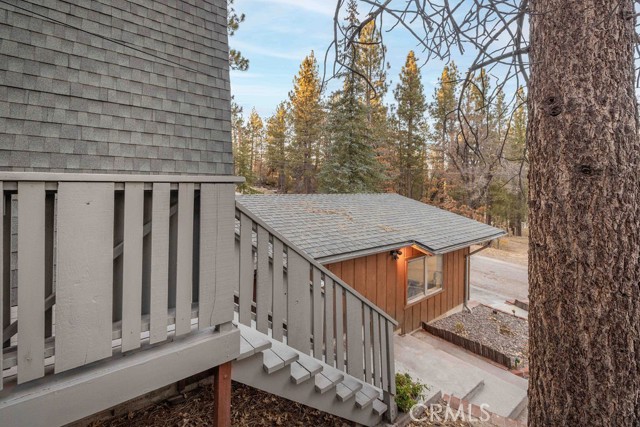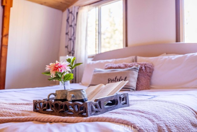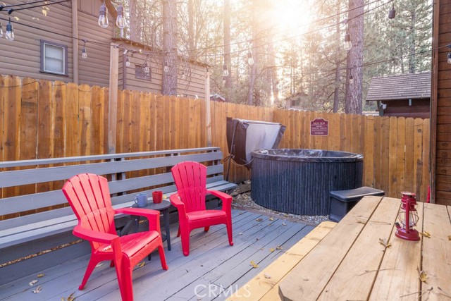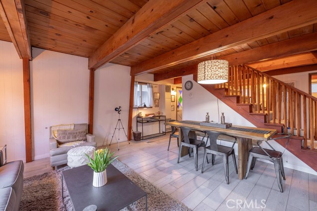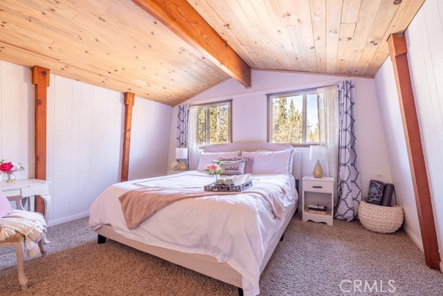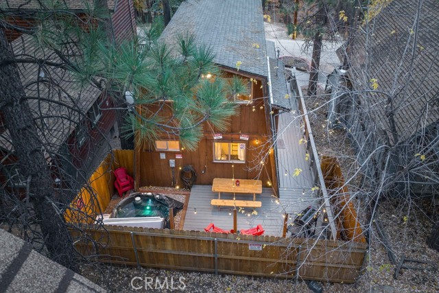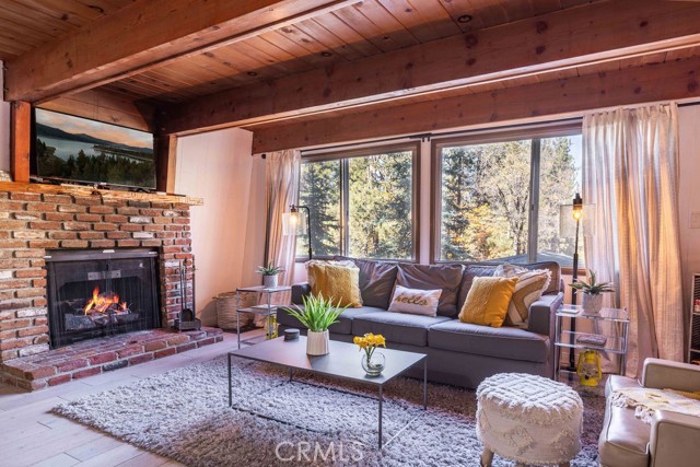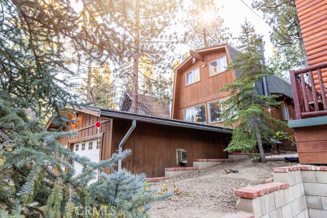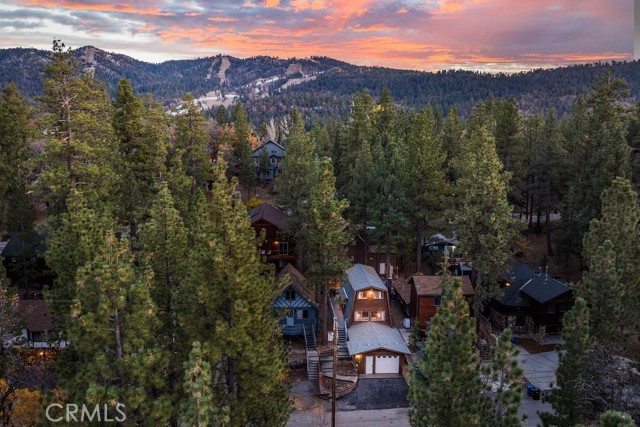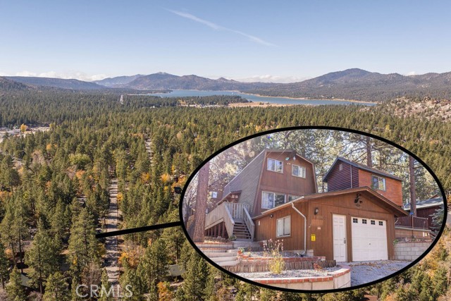 Wow, what a charming and spacious “mod-A-frame” cabin with a garage, in the highly desirable 92314 zip code of lower Moonridge near Fox Farm! On a quiet street but close to Bear Mountain Ski Resort and shuttle parking, Alpine Zoo, the golf course, newly paved walking and biking paths along the Moonridge Corridor, excellent hiking trails, and yummy donut and coffee shops! This property offers a welcoming retreat with an outdoor spa for five, and is surrounded by mature pine and oak trees, providing year-round greenery and vibrant seasonal foliage. As you step inside, you’ll be greeted by a naturally bright and open floorplan with beamed tongue-and-groove pine ceilings delightfully blending the living room, dining and kitchen areas, creating the perfect atmosphere for both entertaining and relaxation. There are 2 large bedrooms, each offering privacy and comfort! The kitchen boasts ample storage and counter space, along with upgraded quartz countertops, farmhouse sink, clean-look open shelving, newer appliances, and additional dining options at the beautiful “live-edge” wooden breakfast bar. Additional benefits include a sizable garage that could easily be used as a game room or workshop, with washer and dryer availability,. The home also features natural wood flooring, vaulted ceilings, and a super cool gas fireplace! Step outside onto the large wraparound deck, where you can enjoy the fresh mountain air and nature sounds, to soak in the tranquil surroundings. The home has been a successful Airbnb with close to 100 5-star reviews, earning the distinction of “Guest Favorite.” What an incredible place to enjoy, create wonderful memories, and even share with guests this holiday season!