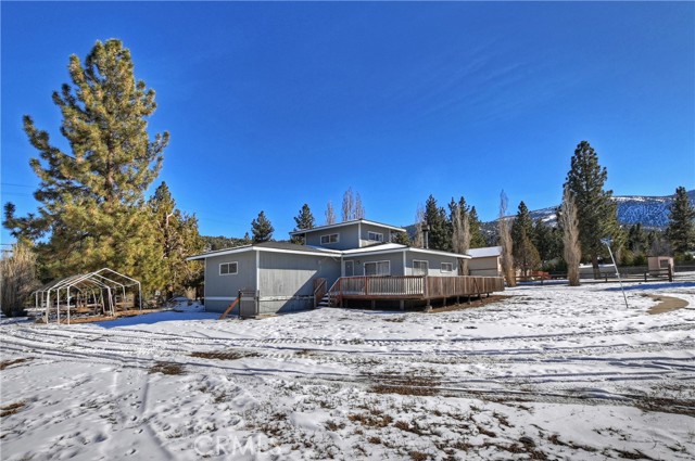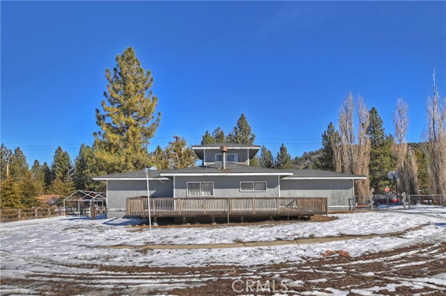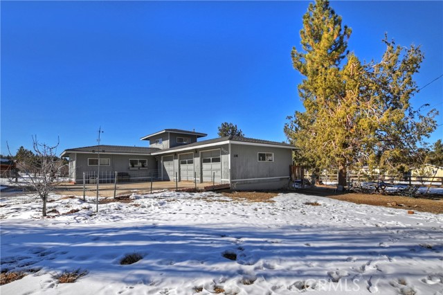 ENJOY RANCH LIFE IN BIG BEAR! This 4 bedroom, 2 bath home with a 3 car garage, sits on over an acre of level land with horse corrals, arena area and fenced yards. Shed and chicken coop. Bedrooms are large, all have closets. Lots of storage inside and out. Has wood burning stove in living room and forced air heat to keep it warm and cozy. On paved and maintained roads and all regular city utilities.
