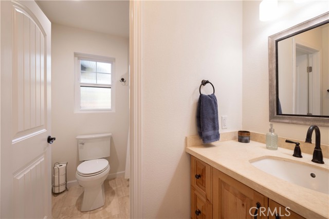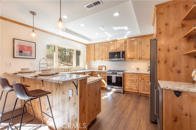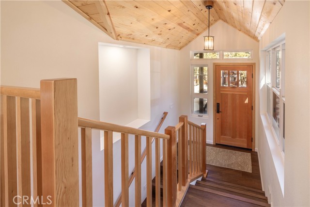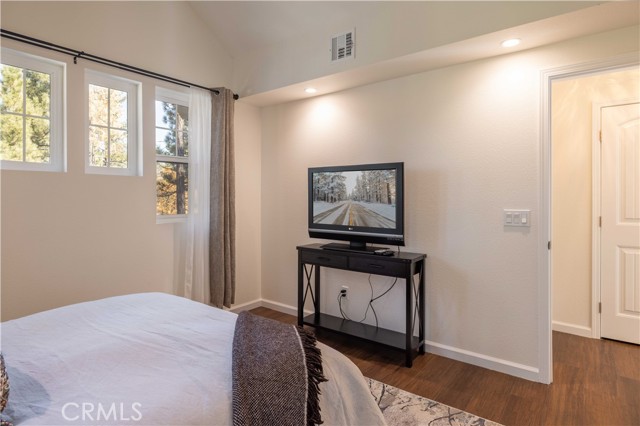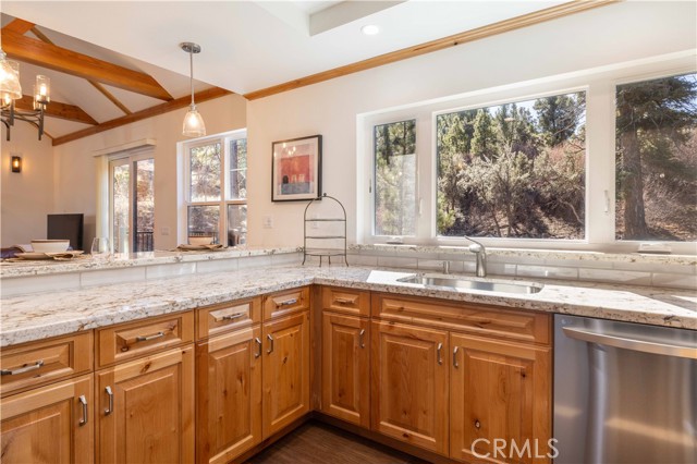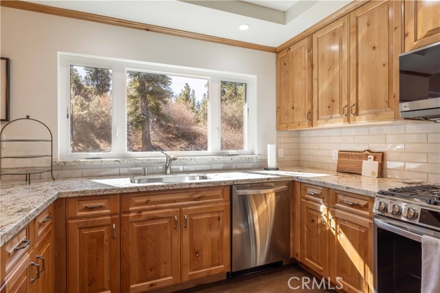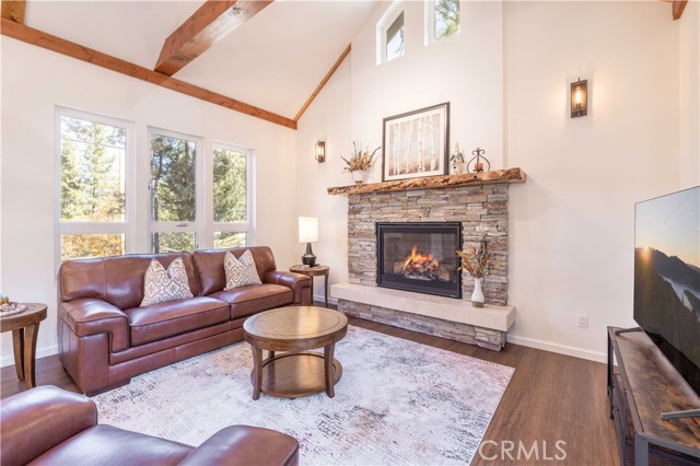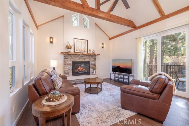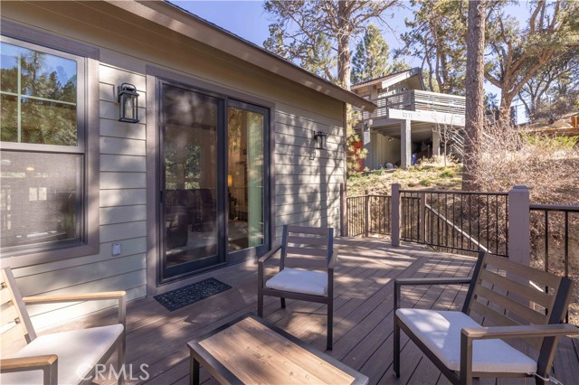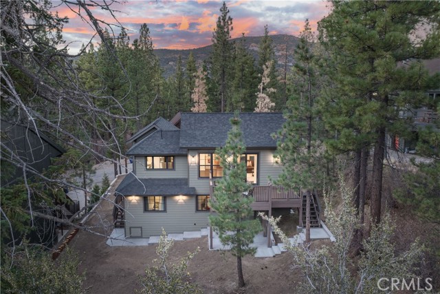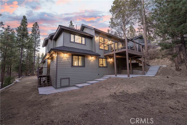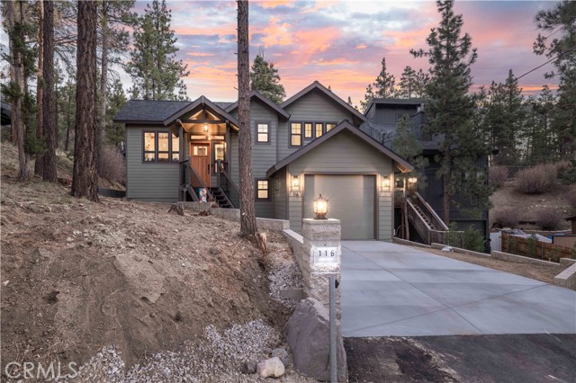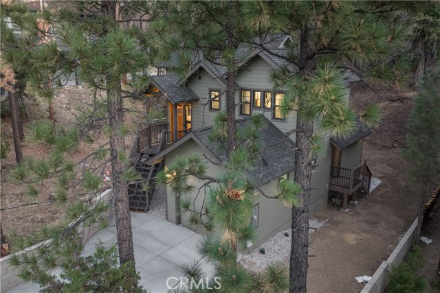 STUNNING NEW CONSTRUCTION BACKING TO 200 ACRE PRESERVE! This is the one you have been waiting for ~ a brand new custom mountain home with an unbeatable forested setting situated on a small quiet street in Big Bear City. Completed in September of this year and ready for new owners ~ just in time for the winter season! This rustic modern beauty features vaulted ceilings with gorgeous wood accents, coretec flooring throughout, gas fireplace with travertine and cedar mantle, a spacious functional kitchen with granite counters, knotty alder cabinets and all new stainless steel appliances. On the upper level you'll find a full bathroom and spacious bedroom offering lots of natural light. On this level you'll also find access to the large back deck with trex decking ~ perfectly situated amongst the trees to enjoy the fresh mountain air. Bottom level offers ample under stair storage, two additional bedrooms, full bathroom and access to garage and backyard. Your unique mountain escape awaits!
