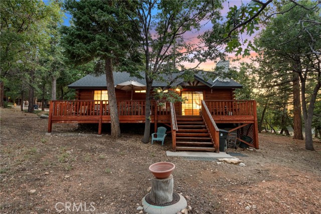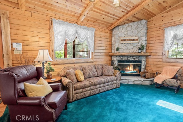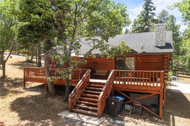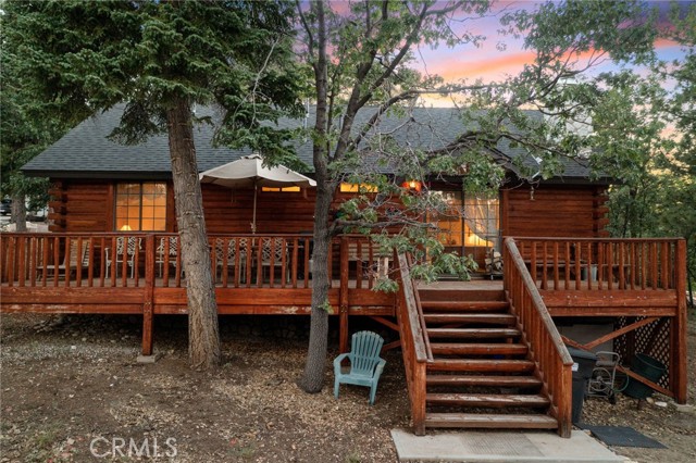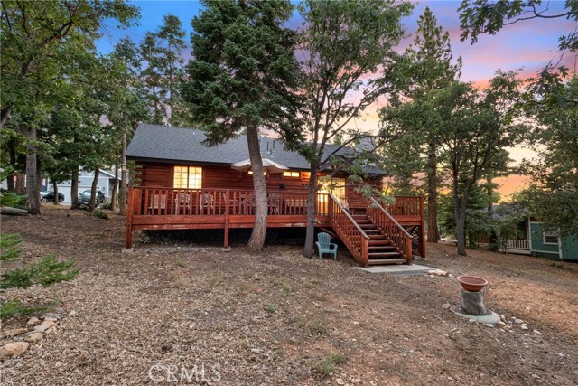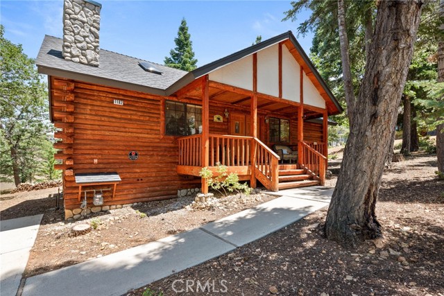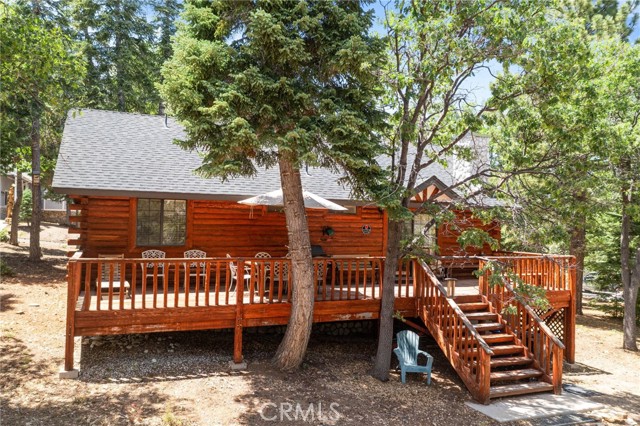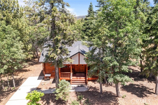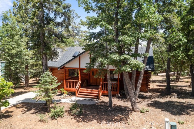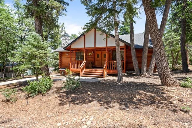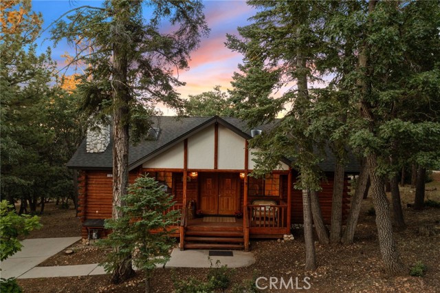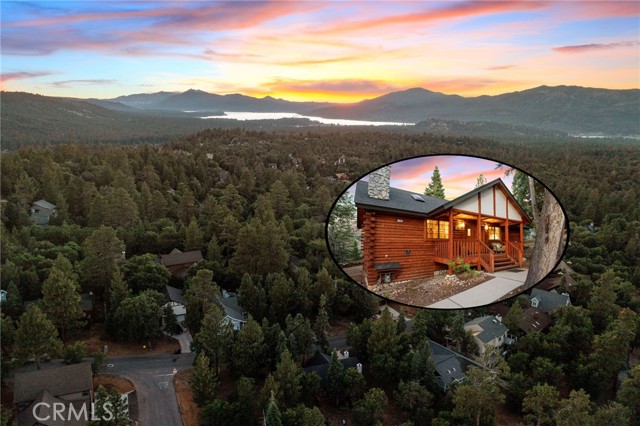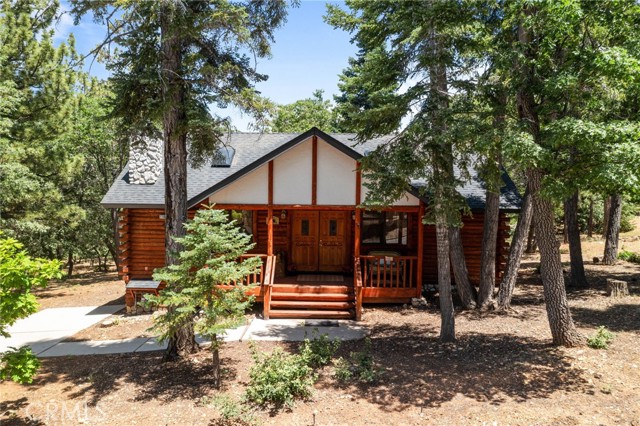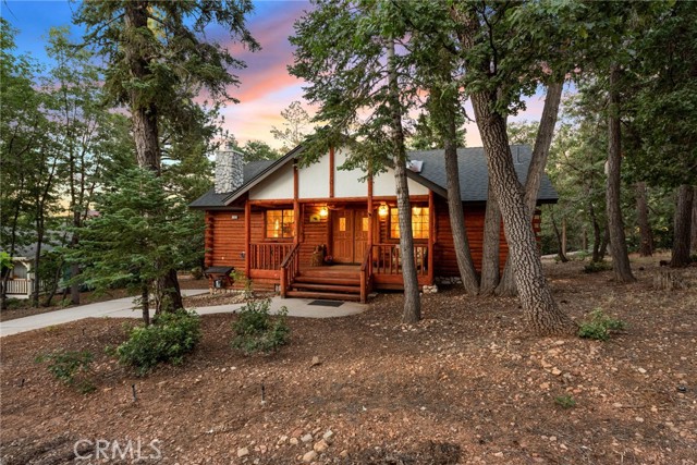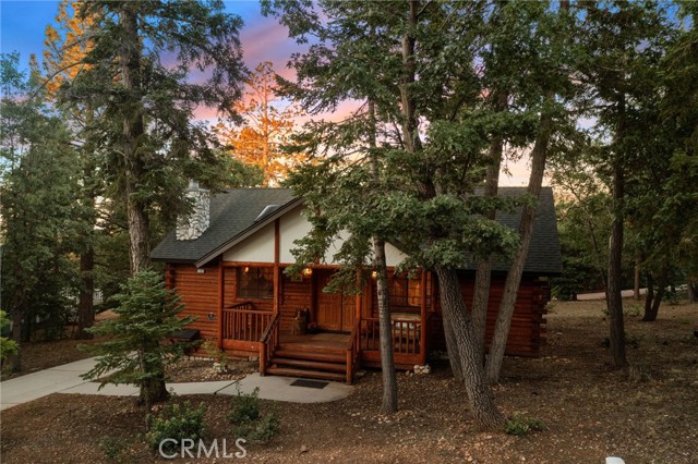 Check out this GENUNE log cabin, single-level home located in the desirable upper Moonridge area of Big Bear! Offering a tranquil setting, with a lot size of 10,364 SF of level and usable land, surrounded by gorgeous tall oaks and pines.The property features a spacious and well-maintained great room with vaulted tongue-and-groove wood ceilings and a floor-to-ceiling rock fireplaces, creating a cozy and inviting atmosphere. The kitchen is open to the living room, enhancing the open layout and making it convenient for entertaining and memory-making. With two large bedrooms and 2 full bathrooms, this cabin creates a welcoming environment for the whole family to enjoy. The primary suite is spacious, with its own full bathroom, fireplace, and features a slider that opens onto the back deck, allowing you to enjoy the beautiful sunsets, fresh mountain air, and barbecuing during the cool summer nights. Just minutes from everything Big Bear has to offer. Skiing and snowboarding, boating on the BEAUTIFUL lake, the Big Bear Zoo, golfing, hiking, and incredible restaurants! If you’re looking for a beautiful and well taken care of full-time home, or a short-term rental, this is the cabin for you! **All offer to be in by August 1st, 2023**