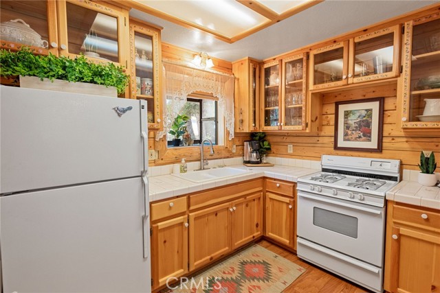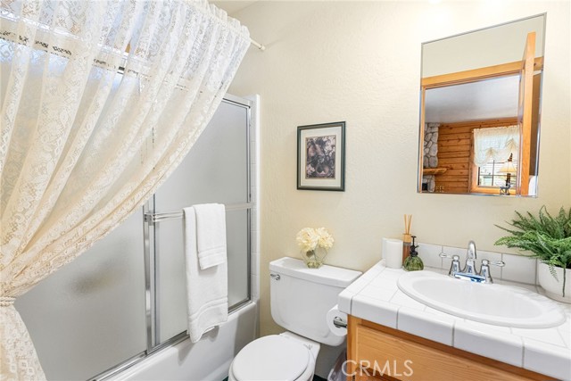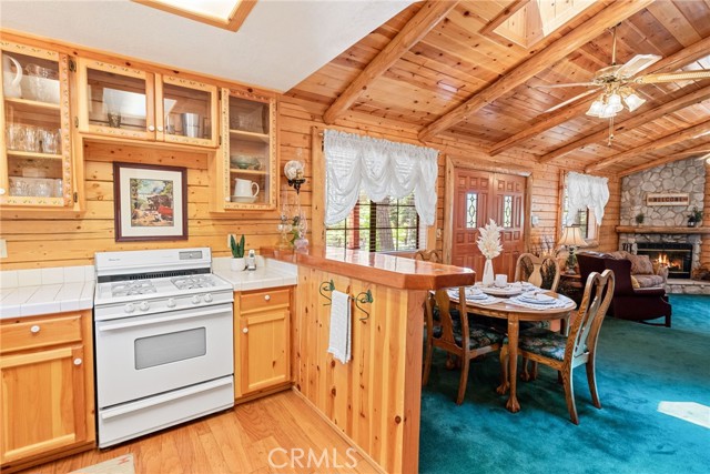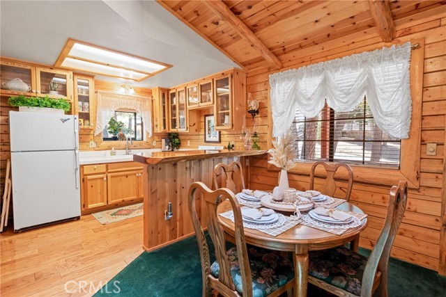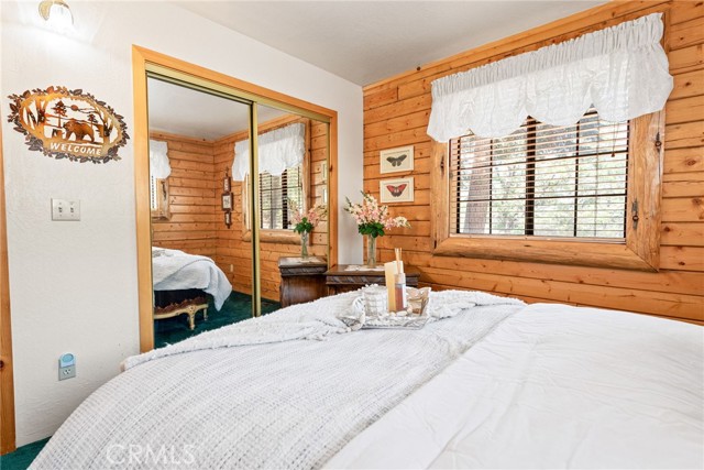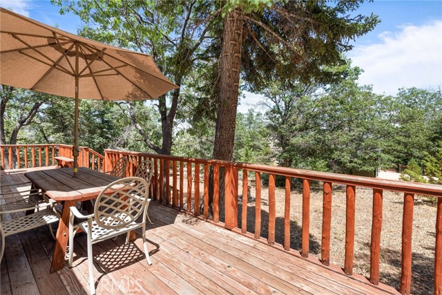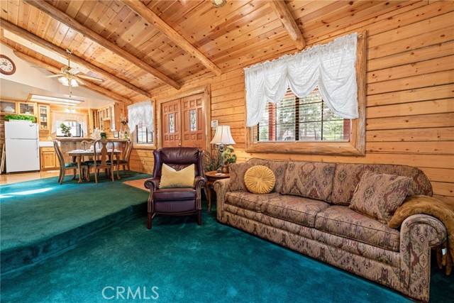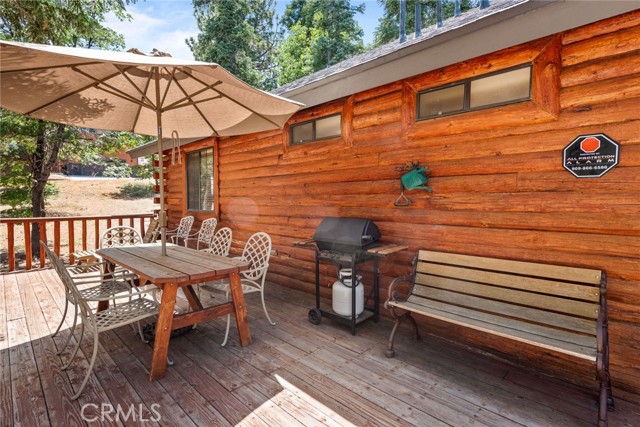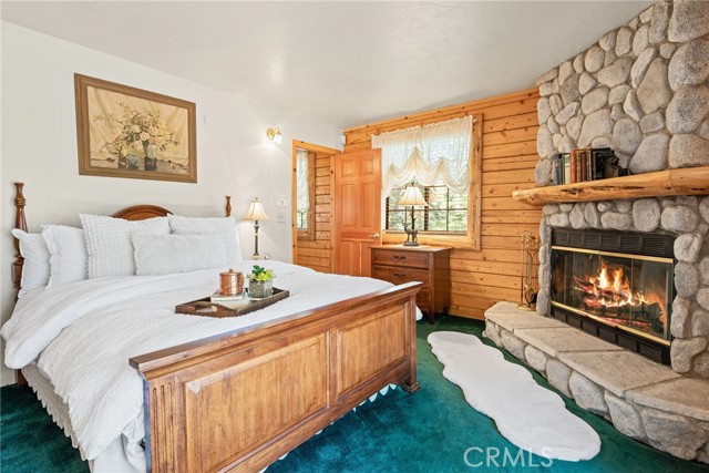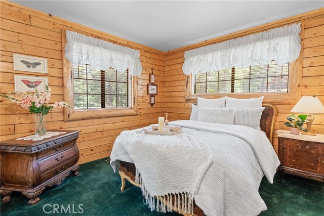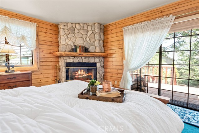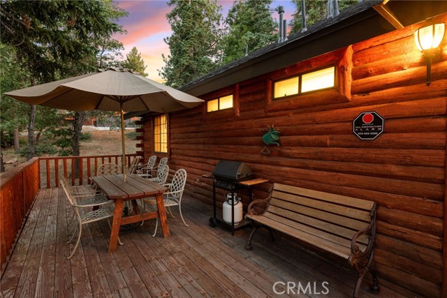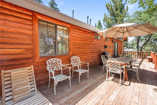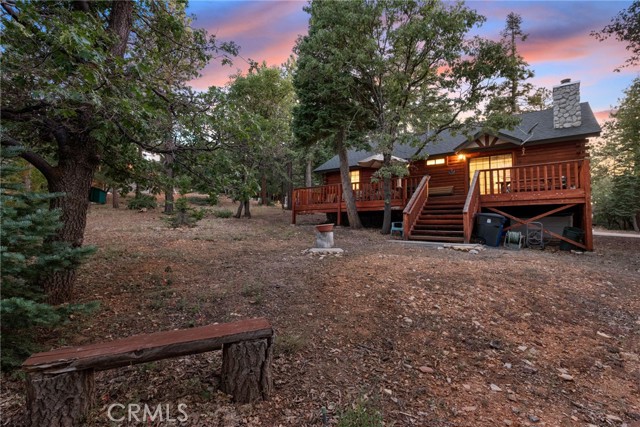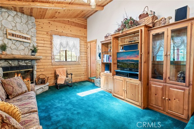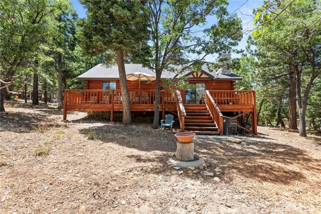 Check out this GENUNE log cabin, single-level home located in the desirable upper Moonridge area of Big Bear! Offering a tranquil setting, with a lot size of 10,364 SF of level and usable land, surrounded by gorgeous tall oaks and pines.The property features a spacious and well-maintained great room with vaulted tongue-and-groove wood ceilings and a floor-to-ceiling rock fireplaces, creating a cozy and inviting atmosphere. The kitchen is open to the living room, enhancing the open layout and making it convenient for entertaining and memory-making. With two large bedrooms and 2 full bathrooms, this cabin creates a welcoming environment for the whole family to enjoy. The primary suite is spacious, with its own full bathroom, fireplace, and features a slider that opens onto the back deck, allowing you to enjoy the beautiful sunsets, fresh mountain air, and barbecuing during the cool summer nights. Just minutes from everything Big Bear has to offer. Skiing and snowboarding, boating on the BEAUTIFUL lake, the Big Bear Zoo, golfing, hiking, and incredible restaurants! If you’re looking for a beautiful and well taken care of full-time home, or a short-term rental, this is the cabin for you! **All offer to be in by August 1st, 2023**
