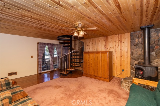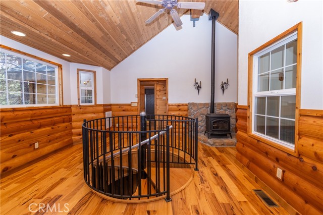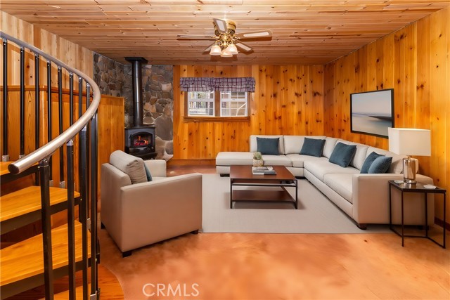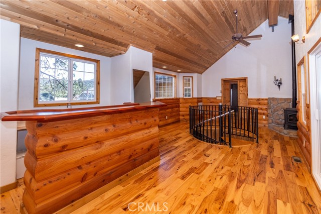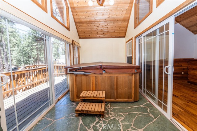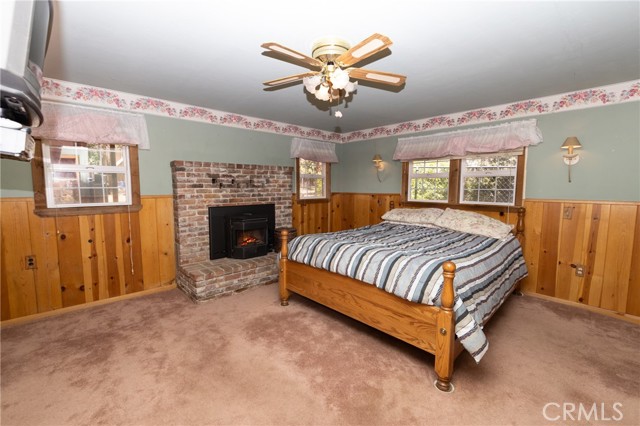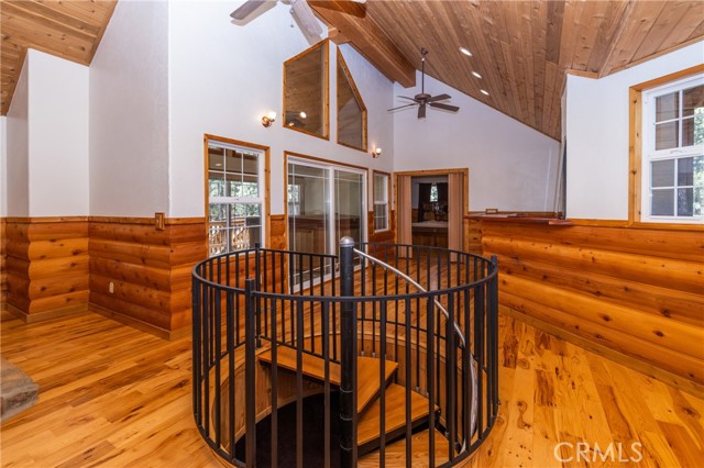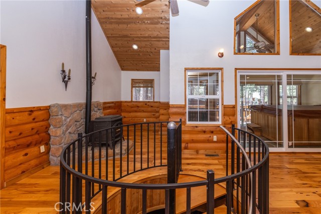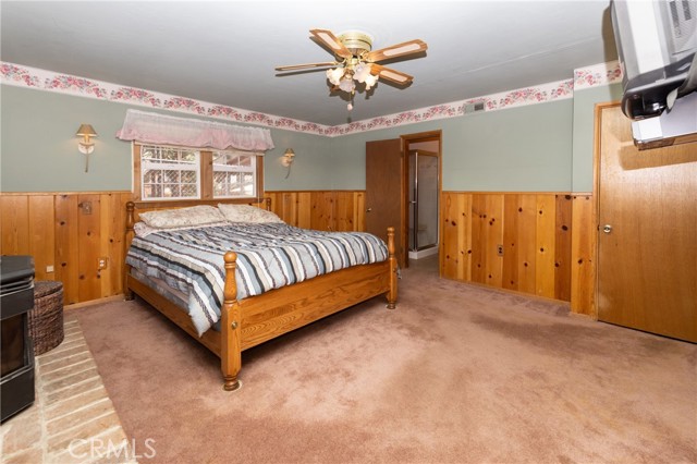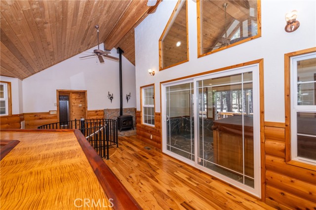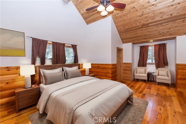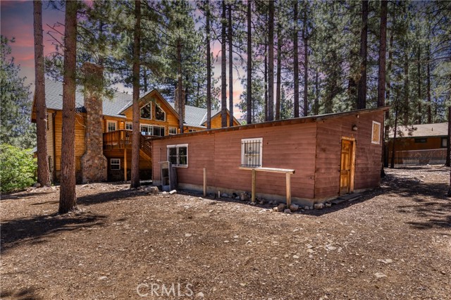 Here's your chance to own a truly unique and spacious two-story mountain home in an unbeatable location! Nestled just steps from the National Forest, this beautiful property offers the perfect blend of rustic charm and modern convenience. Fully fenced, street-to-street on a 22,500 SF lot , this home has plenty of space for all your needs, whether it's parking your RV and boat, accommodating horses. Inside, you'll find four bedrooms and four bathrooms, with two master suites—one on each floor. The second floor, features stunning vaulted ceilings, an oversized spiral staircase, a wet bar, a pellet stove. The jacuzzi room opens to the backyard through sliding glass doors, offering a perfect retreat. The home also boasts four fireplaces, multiple decks off the upstairs bedrooms that make you feel like you're in the treetops, and an indoor hot tub perfect for entertaining. The additional converted barn on the property can be your guest house, studio, or even back into a barn—the possibilities are endless. With an oversized 3 -car garage (potentially 4 depending on car), RV hookups, and plenty of room for all your toys and animals, this property is designed for maximum enjoyment. This home is ready for you to put your own personal touch on it and make it your own. (Some photos are digitally staged to illustrate potential design options.)