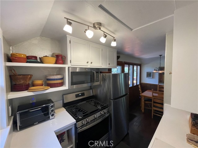 Adorable 1920's cabin among the trees! Nicely situated on a wide lot with views and wildlife. Remodeled to keep its original and historic character and charm. This house has unique long cedar shingled sidings and boasts custom native rocks stepways leading you to a spacious wrap-around deck with covered back patio. Stepping inside, you're welcomed by the cozy Gold Mountain rock wood burning fireplace, Douglas Fir wood flooring, Fir doors with original hardware and windows spanning every wall, perfect for watching the snow in the winter or letting in the breeze during the summer. New 14" thick attic insulation and winterized water supplies; this combined with central heating will surely keep you comfortable all winter long. The back door by the kitchen leads you to a covered patio with plenty of privacy and gorgeous pines views. Downstairs, you'll find the 2 bedrooms and a separated bathroom, 1 room for the shower/bath and 1 room for the toilet/sink. Just off the bedrooms, you have access to a walk-in storage underneath the cabin and the backyard that's beautifully landscaped with lilacs, Sequoia trees, and more. All watered with irrigation on a timer! Also comes with new high efficiency furnace that can be turned on before you get there, newer stainless steel gas range, newer stainless microwave hood ducted outside, and newer stainless refrigerator with ice maker. New water supplies and drain lines. This property is truly special! Check it out and make this your rental, new home, or quiet retreat. Walking distance to hiking trails with 2 off street parking spaces. Cabin downslopes for easy access.