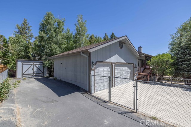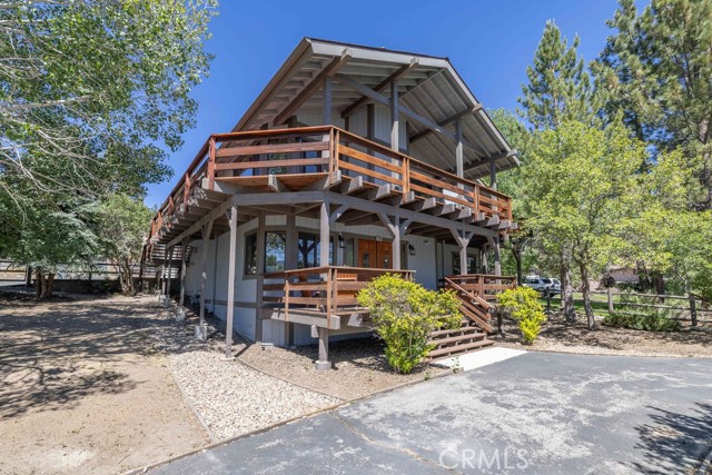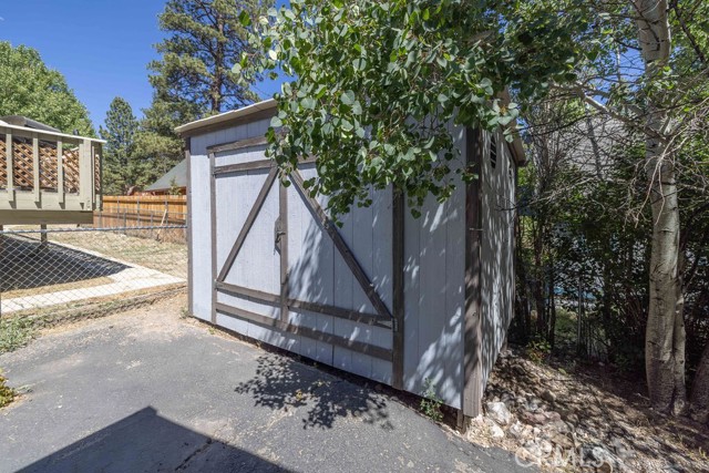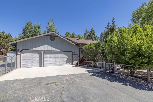 CUSTOM BUILT SHAY MEADOWS HOME WITH A QUIET, TREED SETTING AND VIEWS OF THE SURROUNDING MOUNTAINS AND MEADOW........ Tons of storage space in this 3 bedroom, 3.5 bath Bear City home. Main level features a large great room living area with vaulted T&G cedar ceilings, floor to ceiling river rock fireplace wall with wood burning stove, and access to the huge wrap-around view deck. Open kitchen has tiled counters, breakfast bar seating, a gas cooktop plus double ovens, fridge, microwave, dishwasher, and trash compactor. Nice cabinetry with pull-out drawers. Adjacent dining area nook with nice views. Large rec room with vaulted ceilings and skylight, great for gaming area or home office. There's a 1/2 bath on the main level as well. Primary suite has vaulted ceilings, gas log fireplace and access to the front deck. Ensuite bath with jetted tub, separate shower, and walk-in closet. Lower level features a nice entry area from front driveway, 2 spacious guest suites with attached baths, and access to the huge basement area - providing access to mechanical systems, and has lots of other possibly uses, plus even more storage. 3-car garage with new insulated doors, workshop area and storage. RV and/or boat parking with sewer dump as well. Fenced in rear yard with private deck area, dog run, and detached storage shed. Newer roof. Level, easy access location, just a 10 minute drive to the lake and ski slopes. Tons of outdoor parking and great south facing sun exposure.