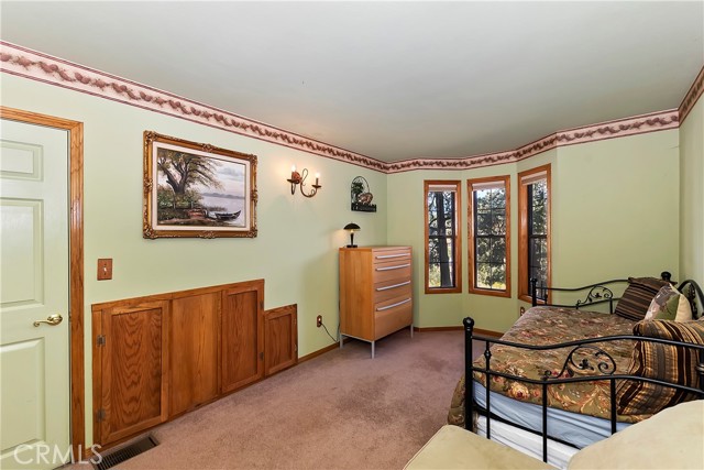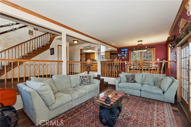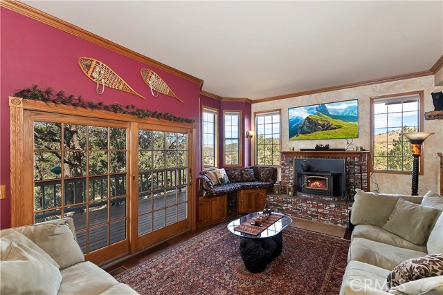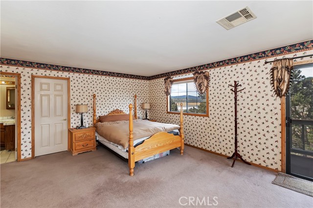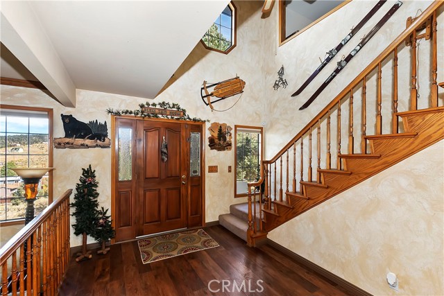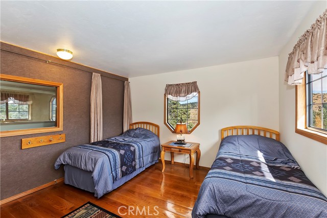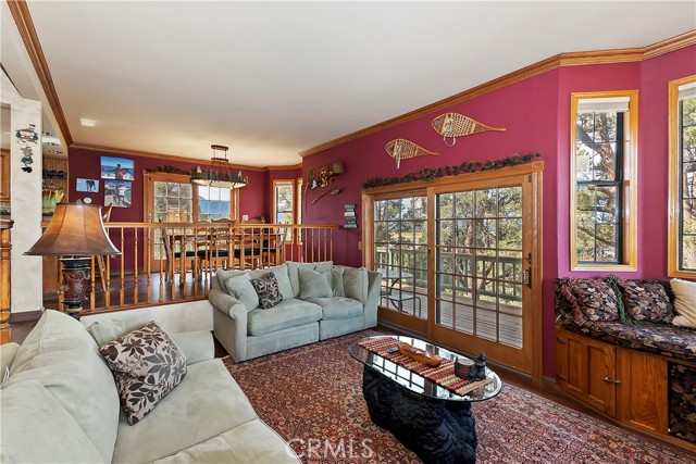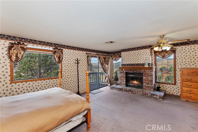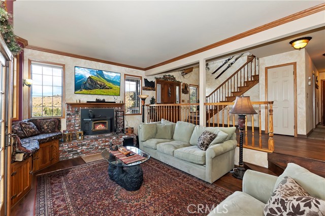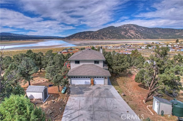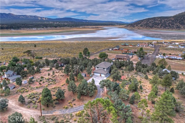 Here is the escape from the daily grind you have been searching for~ This custom mountain home comes with 2 adjacent lots giving you a total of 50,000 sq. ft. (1.14 acres) of land for horses and plenty of space from neighbors ~ The elevated location provides you with expansive views of Baldwin Lake, the ski slopes and surrounding mountains ~ Sunsets are truly a sight to behold as the sun nestles behind the mountains ~ As you enter the foyer, with its lovely wood floors, you will be greeted by the sun shining through the many windows ~ The sunken living room features a brick fireplace with wood burning stove insert, great for keeping warm while you cuddle up with your loved ones on those chilly winter evenings ~ The kitchen, with its granite counter tops, tile floors and stainless steel appliances, is open to the living room and dining area ~ As you sit to supper with the family, you will not be able to stop staring at your views ~ The main level also has one bedroom and bathroom ~ Upstairs you will find the master bedroom with its own brick wood burning fireplace and balcony for relaxing and enjoying your views ~ The upstairs also has two more bedrooms, guest bathroom and a loft that can be used as a 5th sleeping area or office ~ Tons of parking and a 3 car garage ~ If adventure is in your heart, you have easy access to the national forest, PCT and other hiking trails, trails for off-roading and more ~ All this and just a short drive to the lake, ski slopes shopping and dining!