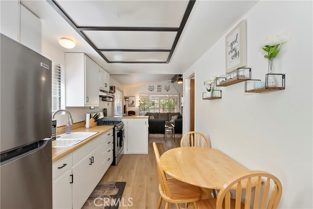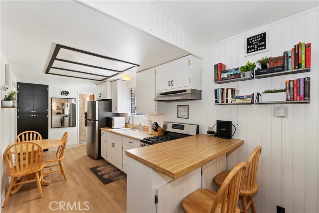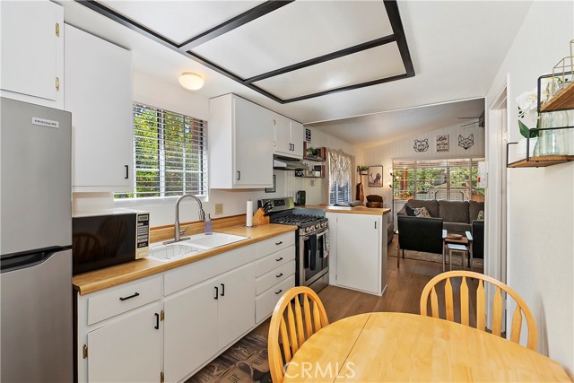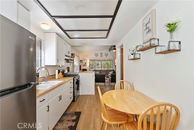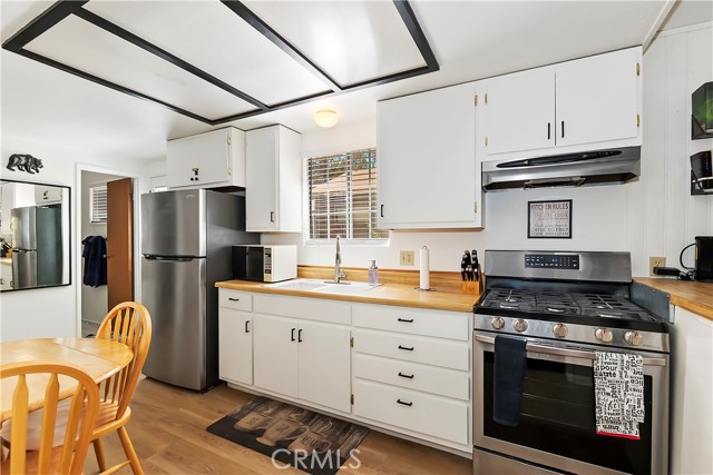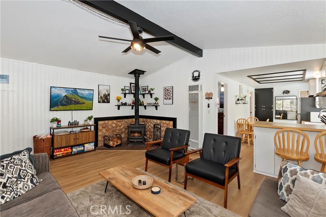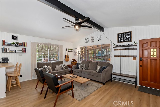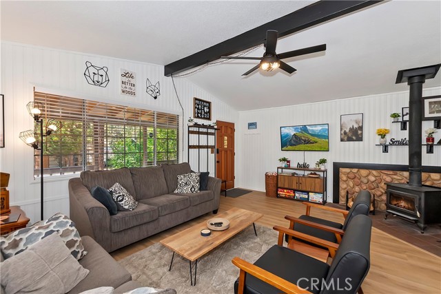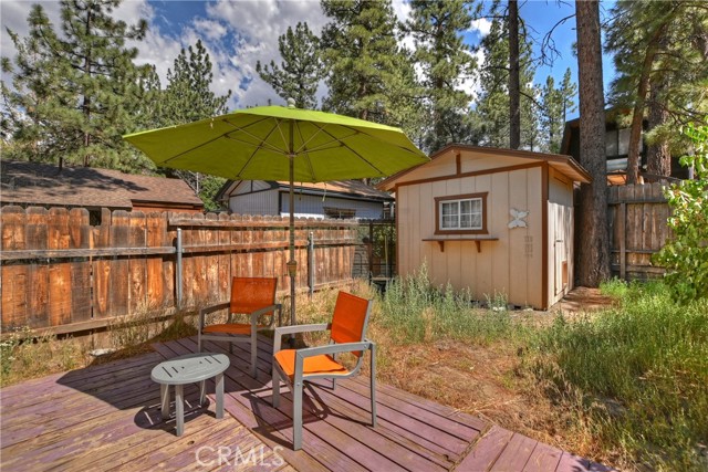Conveniently located near Big Bear Airport, this cabin is just a short drive to Snow Summit, the Village and other amenities of Big Bear Mountain. The unit has been updated with dual pane windows, keyless entry, a front door security camera and motion flood lights located at the front and rear of the property. The recently painted interior, new flooring and decor of the cabin has been tastefully done, bringing a sweet sense of comfort and homey-ness for you and your guests. The living room has a high ceiling, and the wood burning stove and wall furnace unit are there to warm you up on those chilly nights. The open kitchen invites everyone to see what's cooking. There is enough front driveway to allow parking for two cars and ample space in the back yard for a small gathering and building a snowman. There is also a large storage shed, supplied with electricity, to house a barbecue grill, some bikes for trail riding, and other items. With all home appliances and all furniture included, this turn-key cabin is equipped to accommodate and move in ready, it may also be used as a short term rental or be the new addition to your investment portfolio.