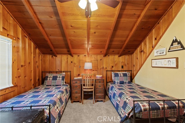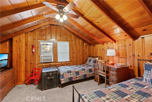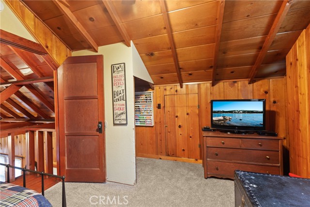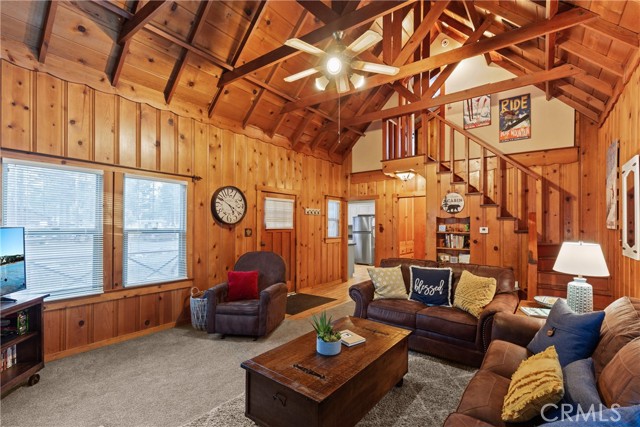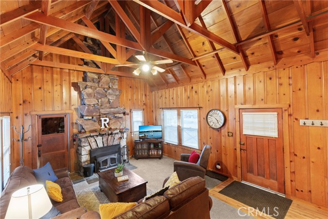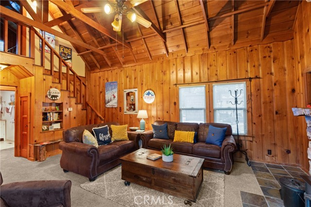 Turn key Airbnb or mountain cabin on extremely RARE LARGE LOT, just 2.5 miles from the lake!!! NEW electrical panel added as of 2022 along with a brand new electric car charger. Garage has been converted to "extra space" for your fun game room with new insulation, sliding glass door, window and stackable washer/dryer. The home itself is absolutely charming with it's vaulted open beam ceiling, stunning stacked stone fireplace along with freshly updated kitchen and bathroom... Walk upstairs to the 2nd bedroom charmingly overlooking the family room and take in all this home has to offer. It's an absolute BEAUTY of a mountain home awaiting it's new owners.